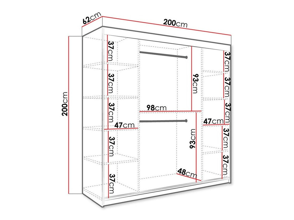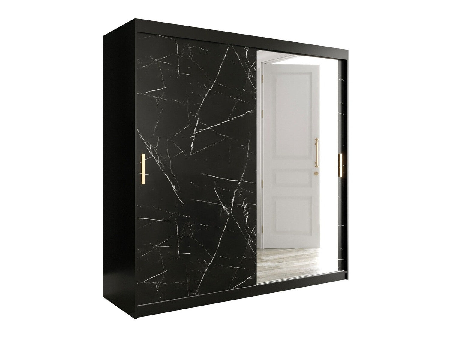 Gardróbszekrény 200 MARMUR T2 (Nemnnus T2 200), Szín: Matt fekete + Fekete márvány, Fiókok: Nem