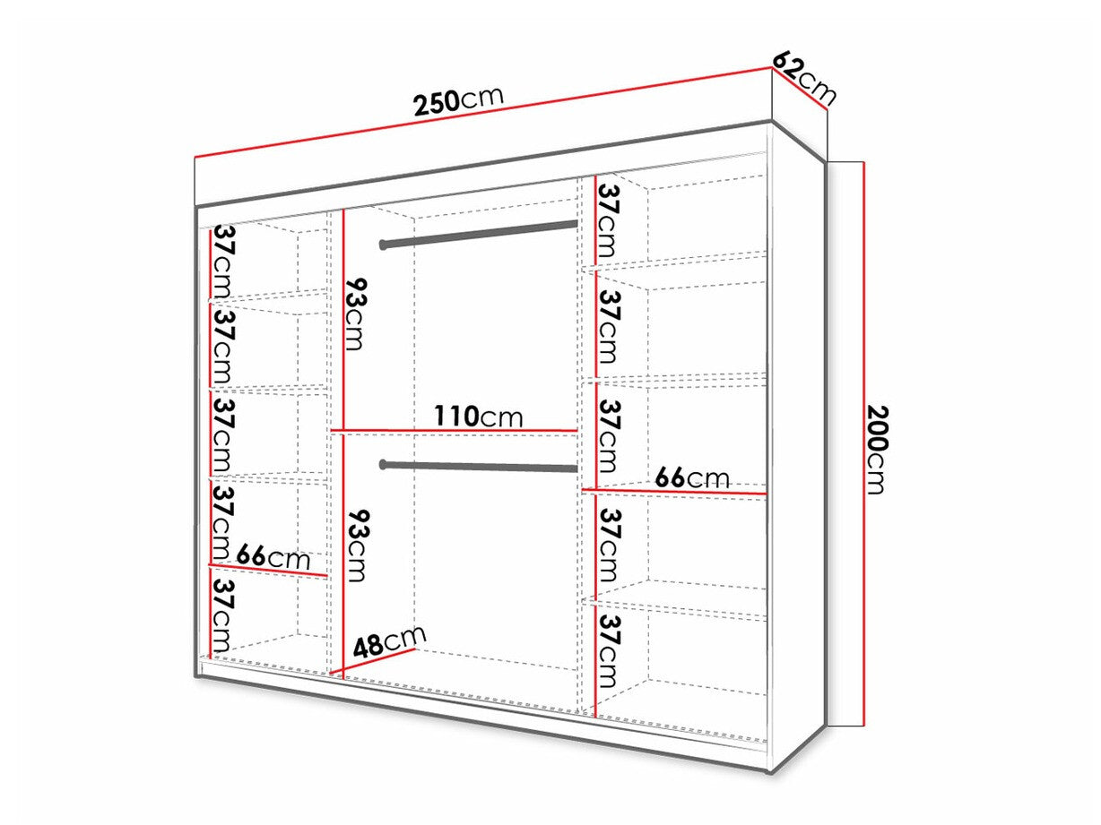 Gardróbszekrény 250 Jodełka 1 (Ratintu), Szín: Fekete + Artisan tölgy, Fiókok: Nem