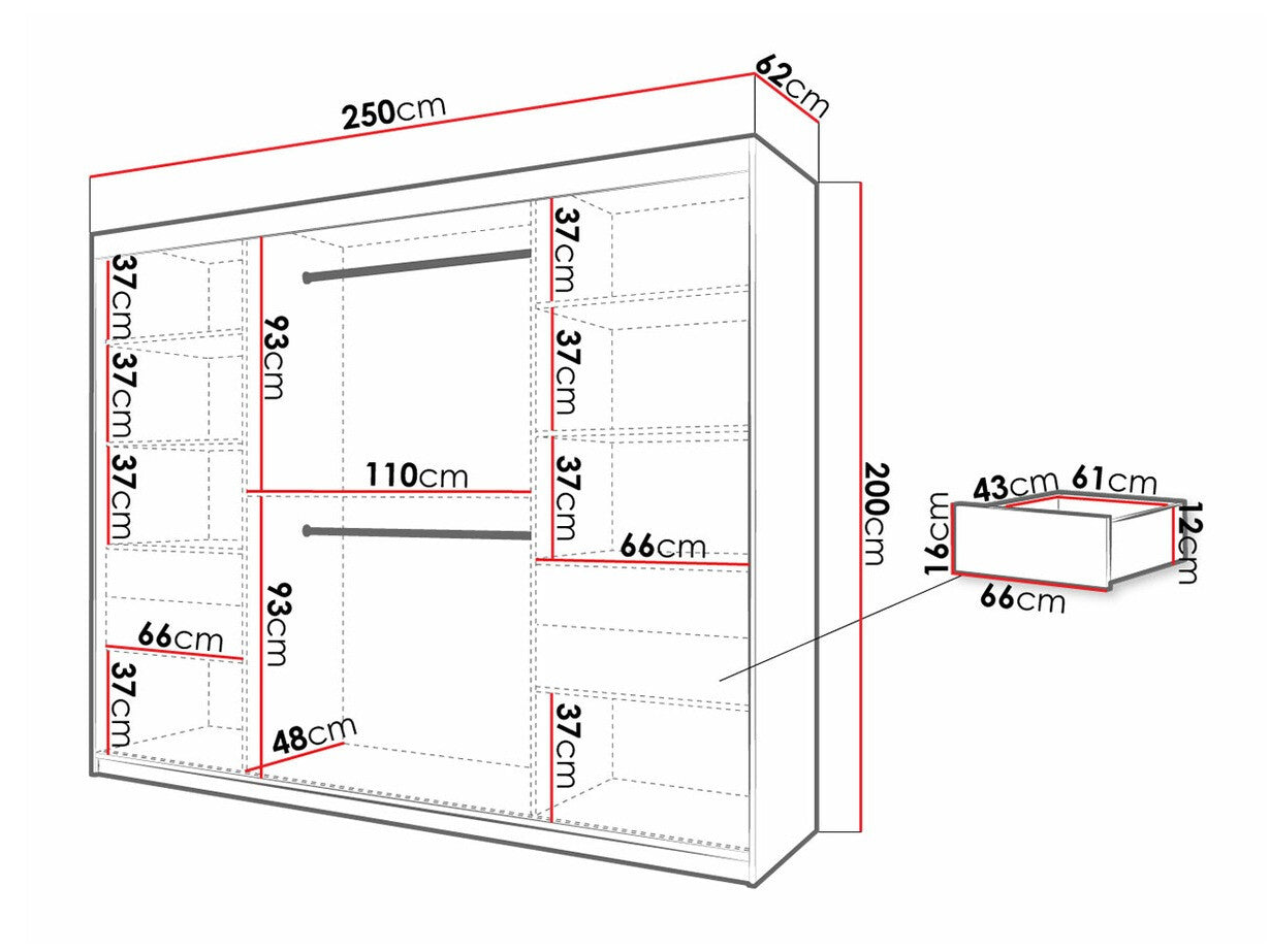 Gardróbszekrény 250 Jodełka 2 (Ratintu), Szín: Artisan tölgy + Fekete, Fiókok: Igen