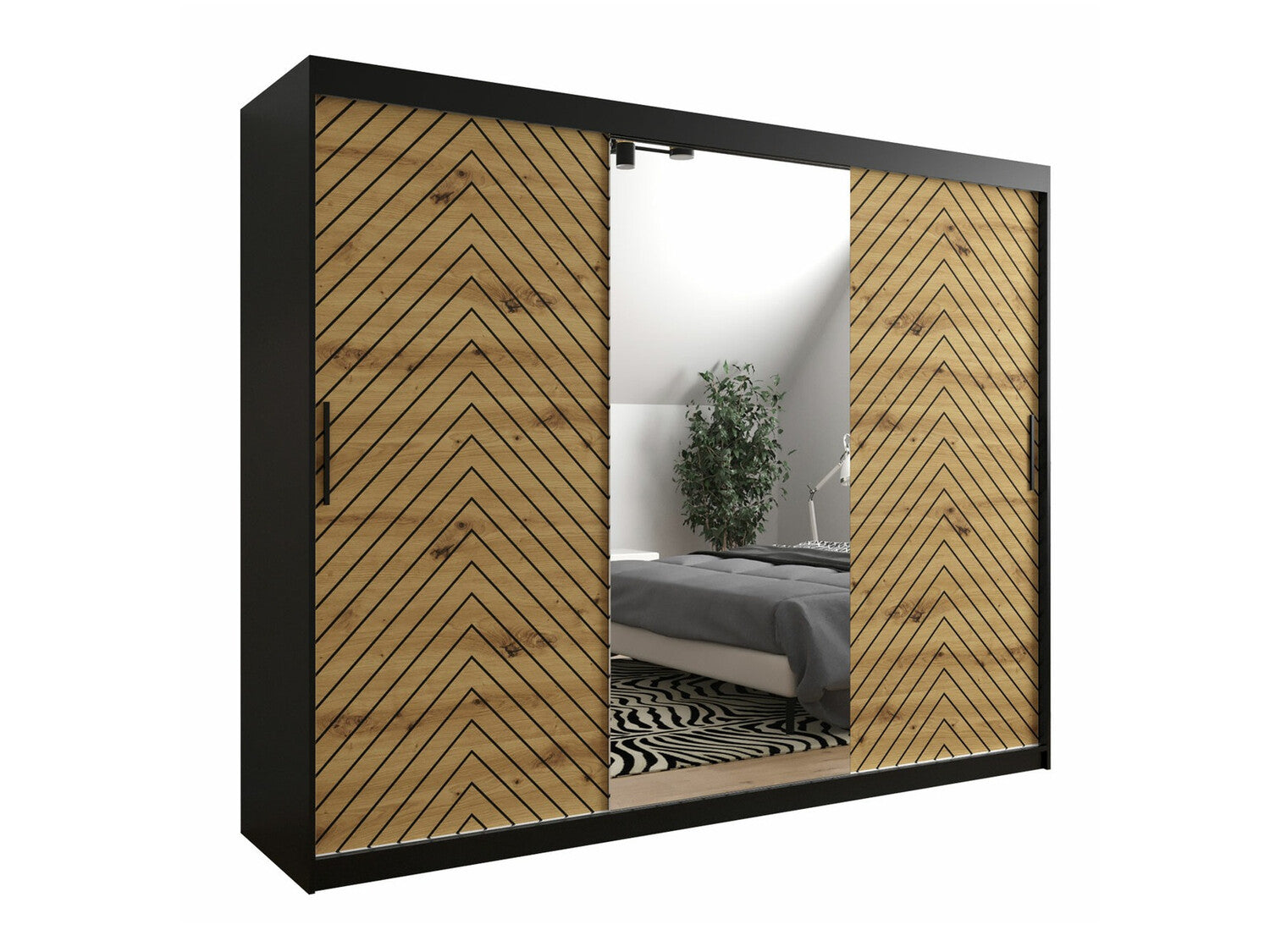 Gardróbszekrény 250 Jodełka 2 (Ratintu), Szín: Fekete + Artisan tölgy, Fiókok: Nem