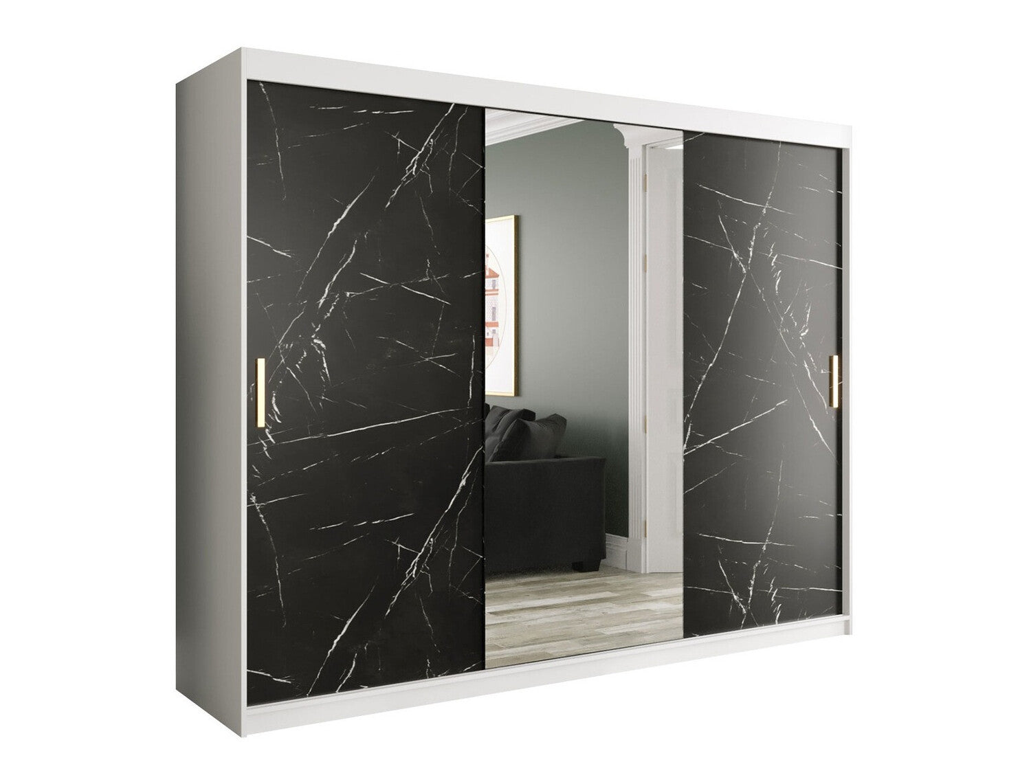 Gardróbszekrény 250 MARMUR T1 (Nemnnus T1 250), Szín: Matt fehér + Fekete márvány, Fiókok: Igen