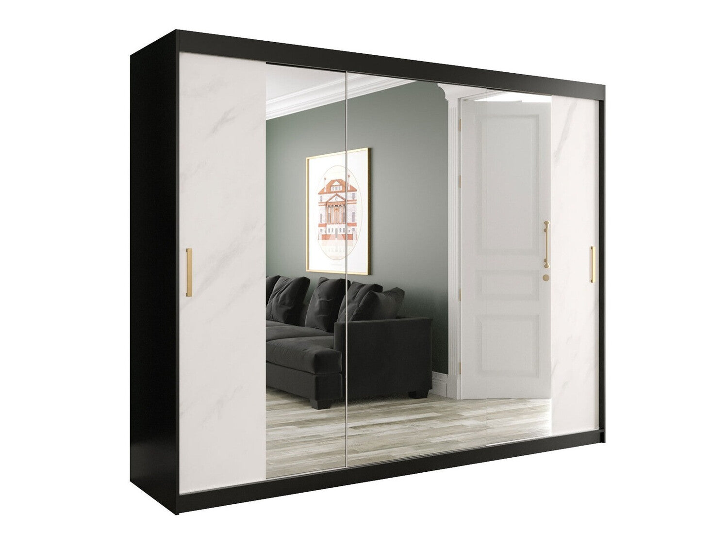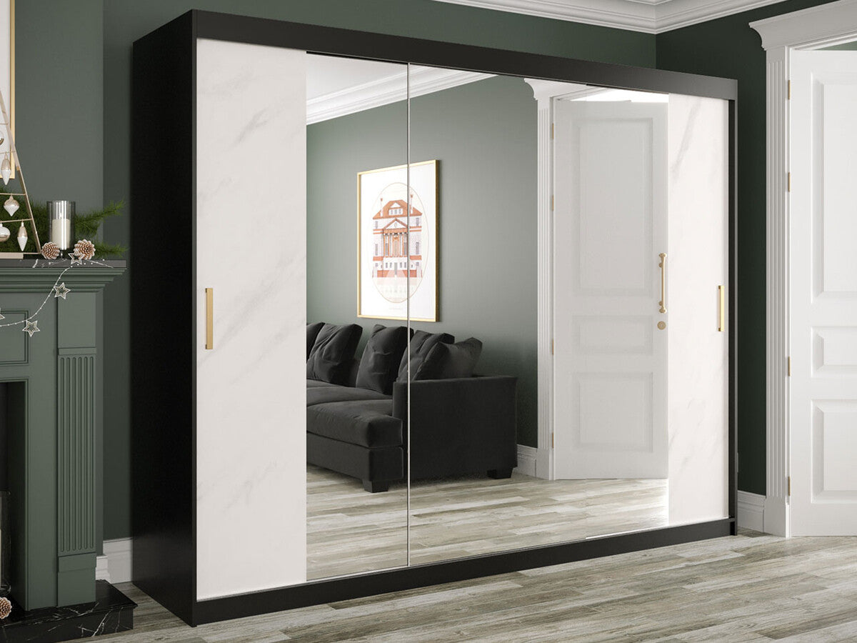 Gardróbszekrény 250 MARMUR T2 (Nemnnus T2 250), Szín: Matt fekete + Fehér márvány, Fiókok: Nem
