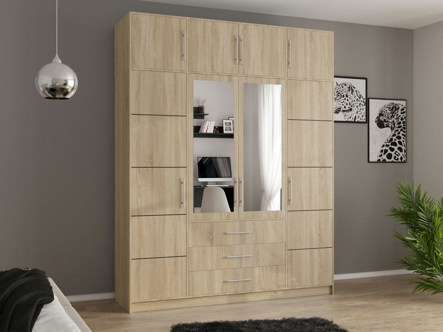 Gardróbszekrény BALI D4 + Szekrény, Szín: Sonoma tölgy