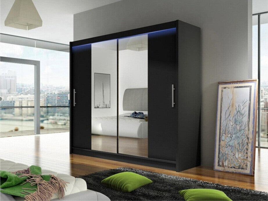 Gardróbszekrény Bega II (London), Szín: Fekete, Led világítás: Igen