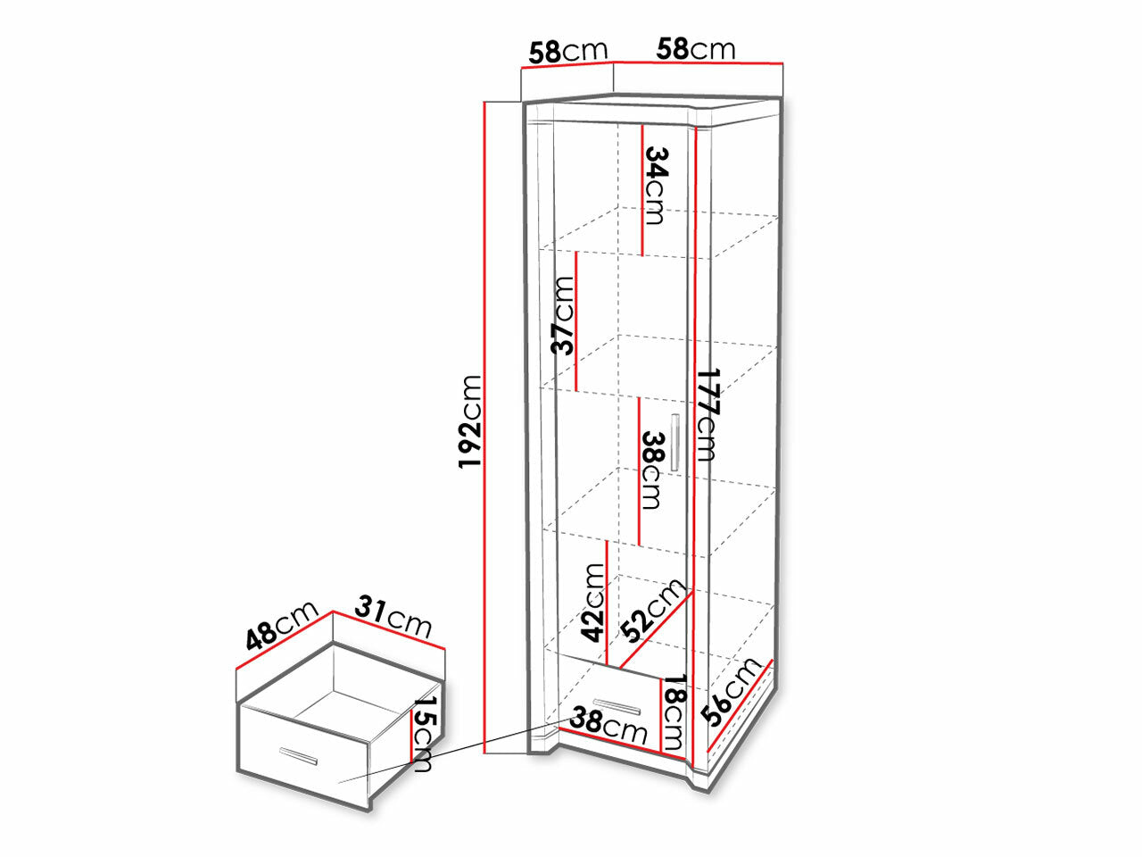 Gardróbszekrény Dallas D19 (Xavier), Szín: Triufel tölgy, Könyvespolcok: Igen