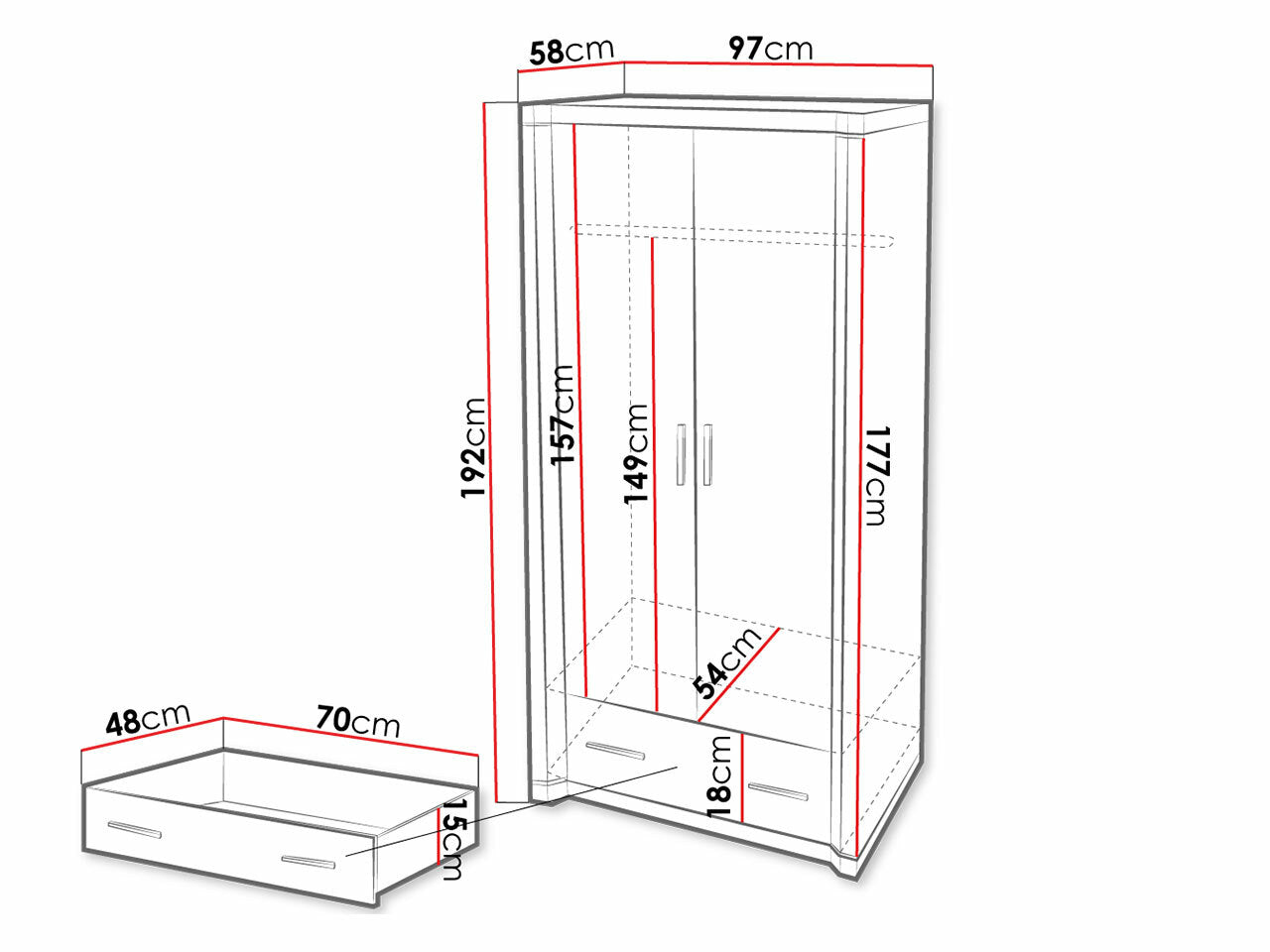 Gardróbszekrény Dallas D20 (Xavier), Szín: Sonoma tölgy, Könyvespolcok: Nem