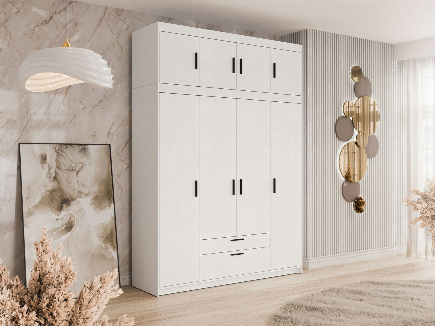 Gardróbszekrény ELENA (Melen 4D), Szín: Fehér