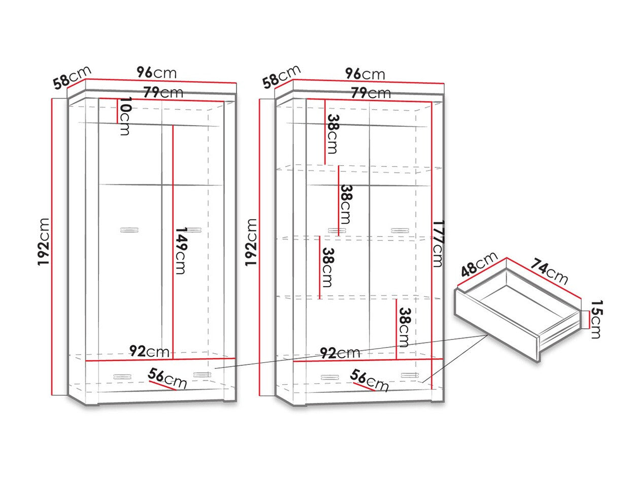 Gardróbszekrény Indianapolis (Nadia N01), Szín: Kézműves fehér