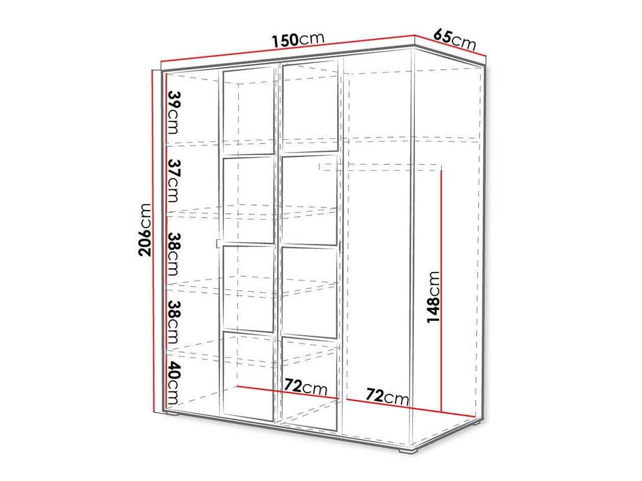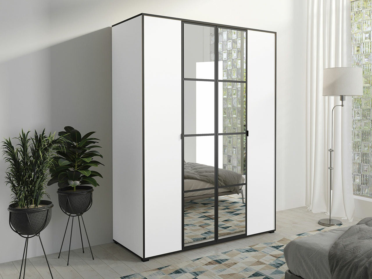 Gardróbszekrény Oslo I (Birelto I), Szín: Fehér + Fekete, Szekrény szélessége: 1500 mm