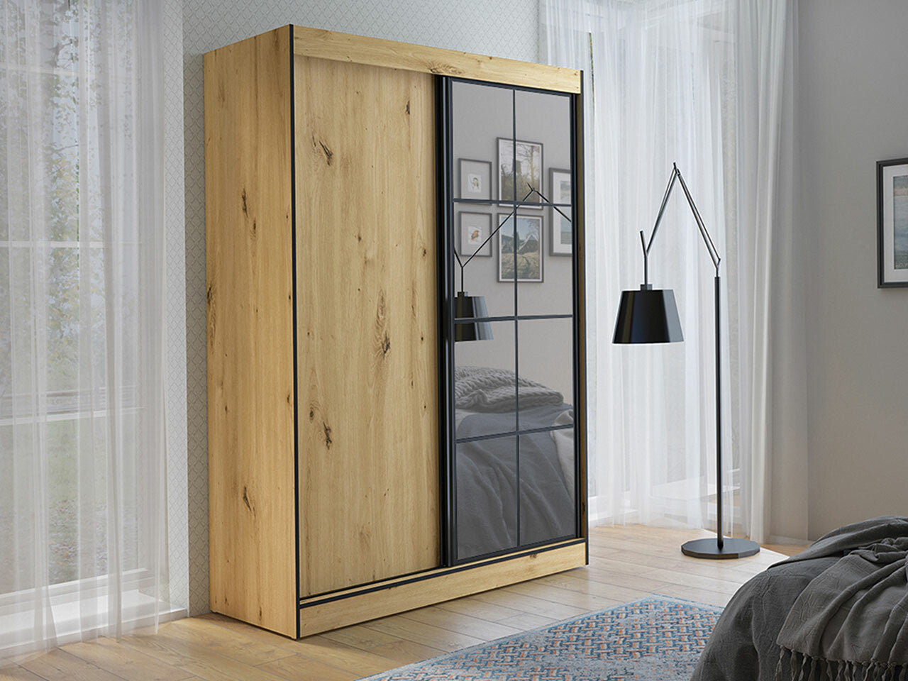 Gardróbszekrény Oslo II (Birelto II), Szín: Artisan tölgy + Fekete, Szekrény szélessége: 1500 mm