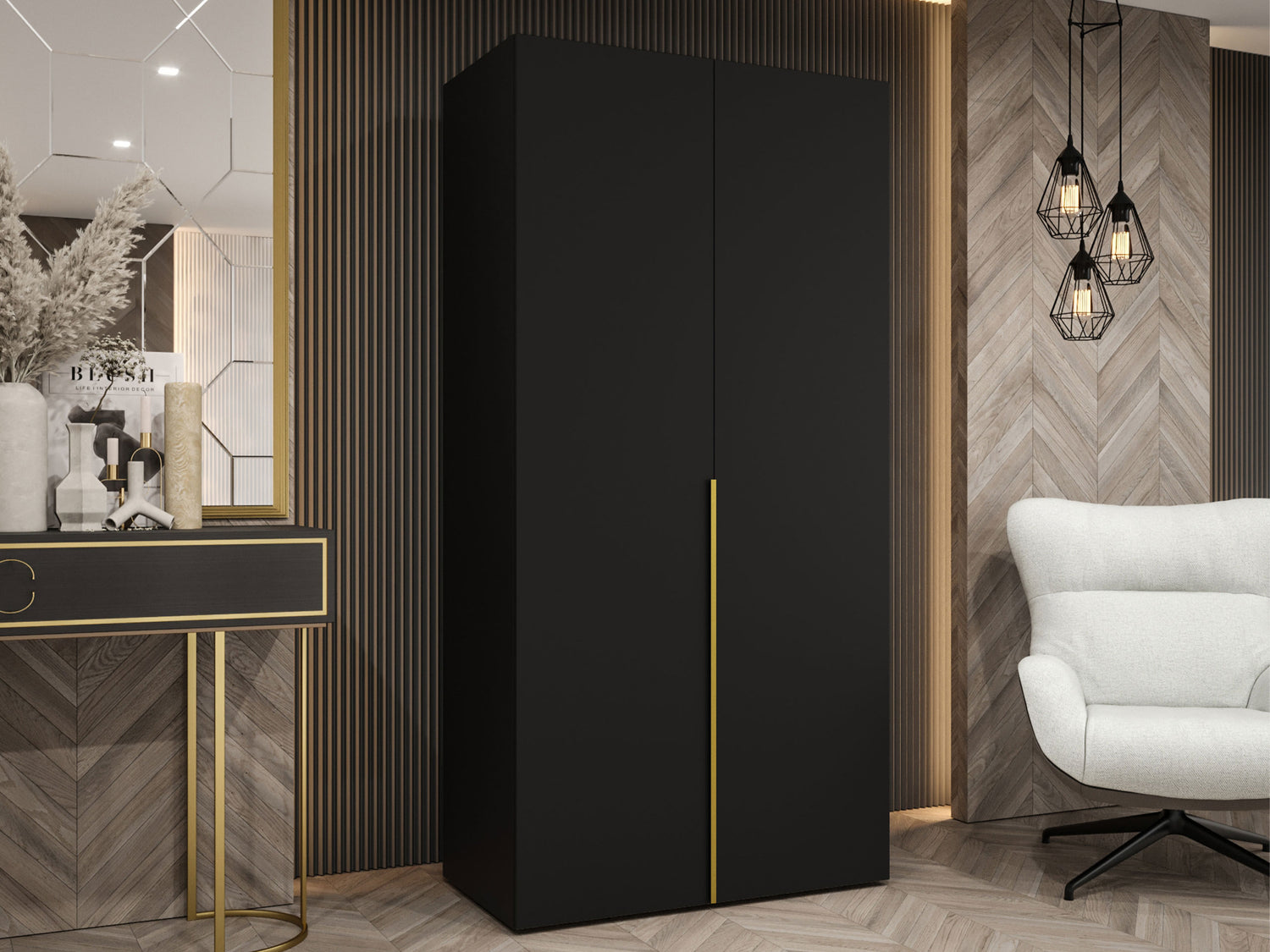 Gardróbszekrény Szafa 100 ALICANTE 1, Szín: Fekete, Fogantyú színe: Aranysárga