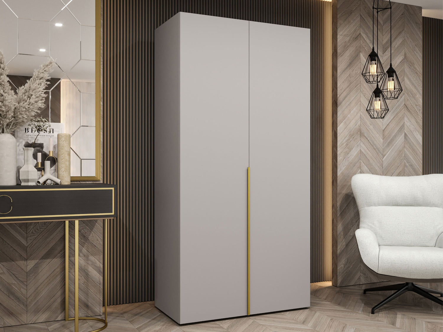 Gardróbszekrény Szafa 100 ALICANTE 1, Szín: Kasmír, Fogantyú színe: Aranysárga