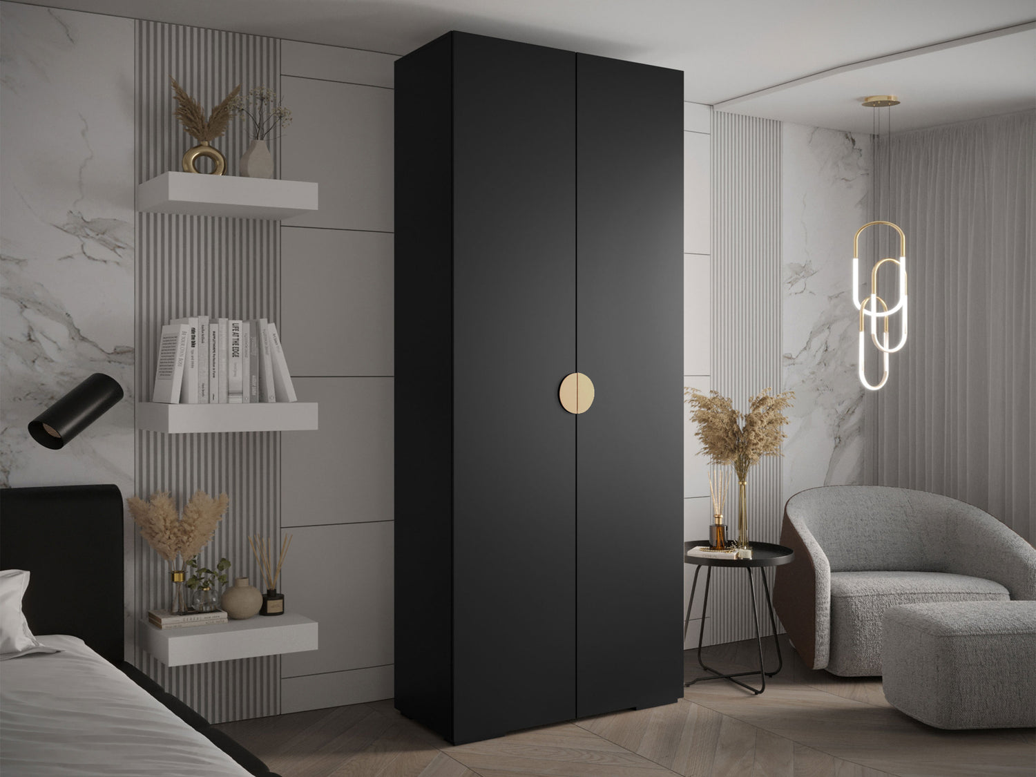 Gardróbszekrény Szafa 100 cm INOVA 4, Szín: Fekete, Fogantyú színe: Aranysárga