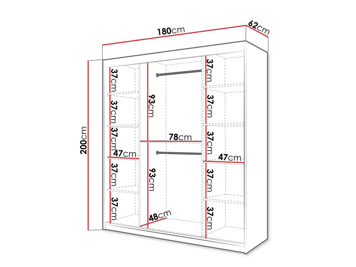 Gardróbszekrény Szafa 100 FLUTES 2, Szín: Fehér, Fiókok: Nem, Szélesség: 180 cm, Led világítás: Nem