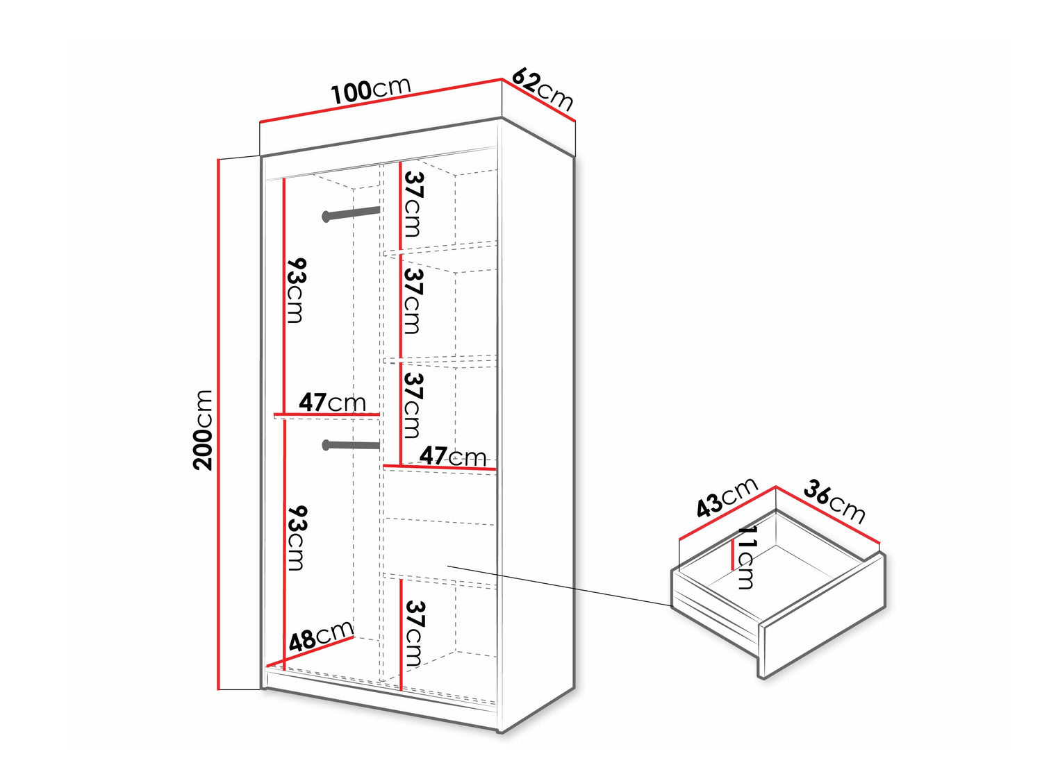Gardróbszekrény Szafa 100 FLUTES 2, Szín: Fekete, Fiókok: Igen, Szélesség: 100 cm, Led világítás: Igen