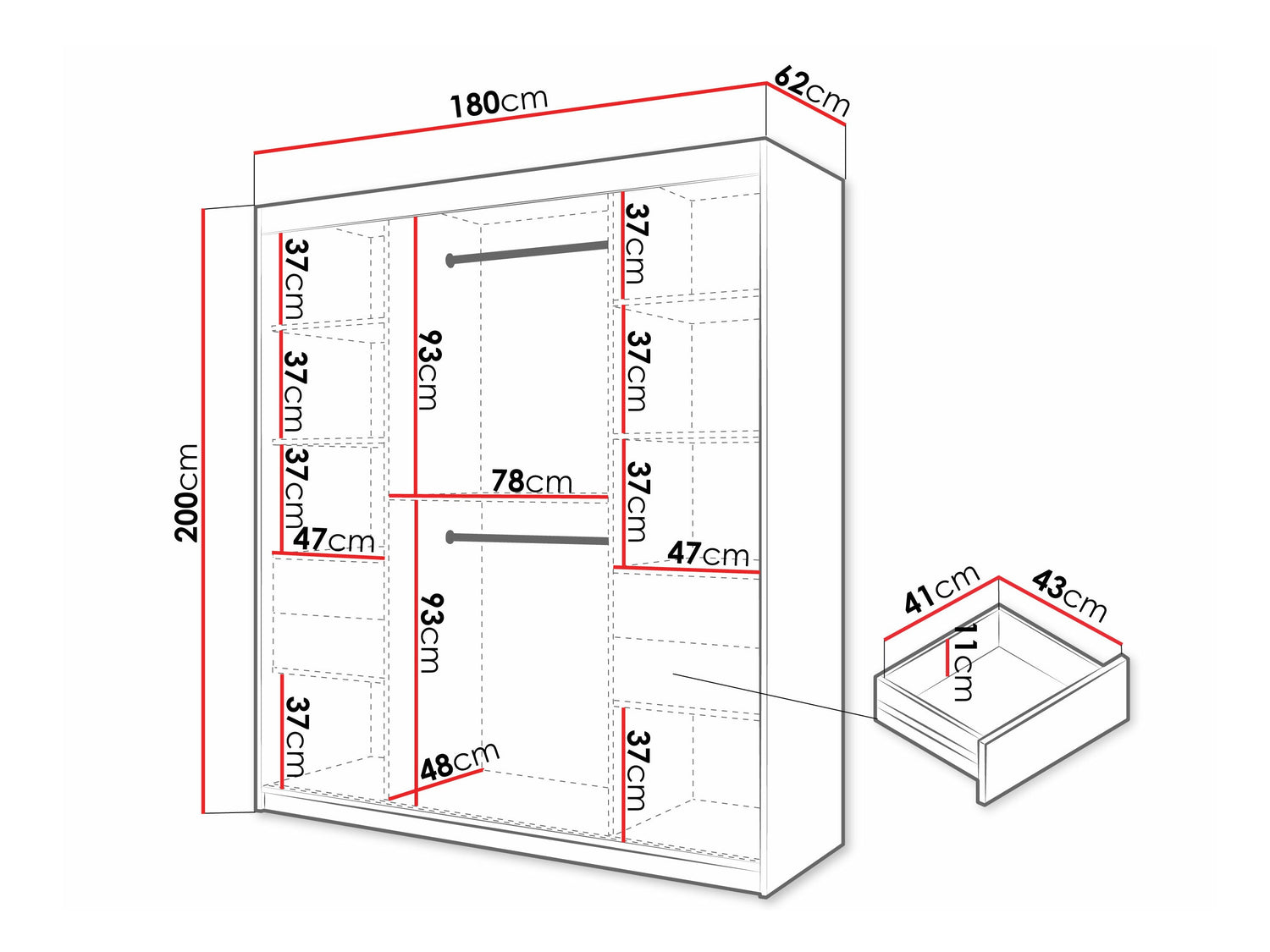 Gardróbszekrény Szafa 100 FLUTES 2, Szín: Fekete, Fiókok: Igen, Szélesség: 180 cm, Led világítás: Nem