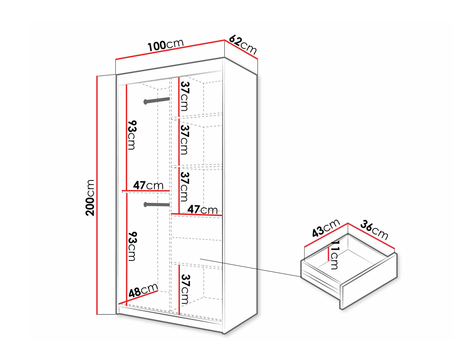 Gardróbszekrény Szafa 100 FLUTES, Szín: Fehér, Fiókok: Igen, Szélesség: 100 cm, Led világítás: Igen