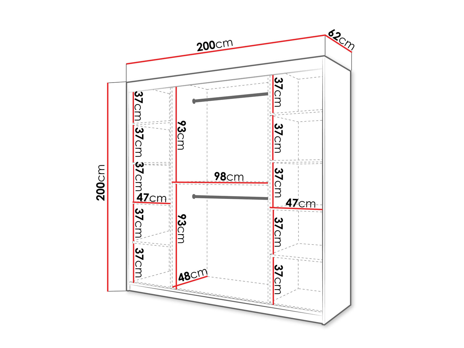 Gardróbszekrény Szafa 100 FLUTES, Szín: Fehér, Fiókok: Nem, Szélesség: 200 cm, Led világítás: Nem