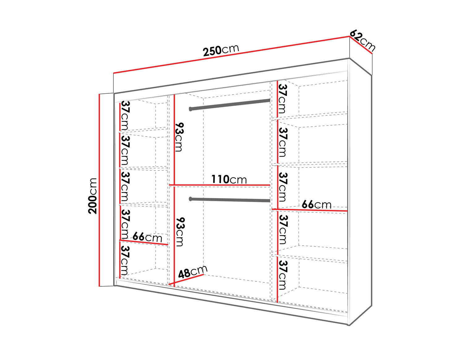 Gardróbszekrény Szafa 100 FLUTES, Szín: Fehér, Fiókok: Nem, Szélesség: 250 cm, Led világítás: Igen