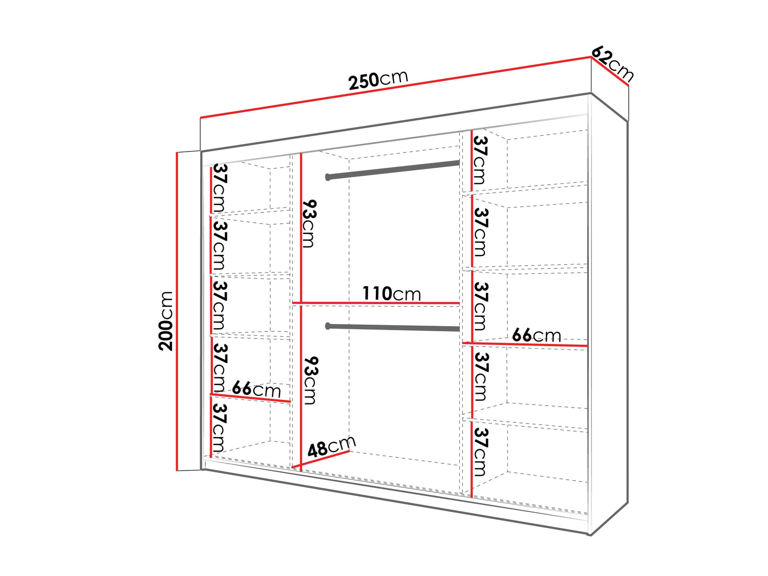 Gardróbszekrény Szafa 100 FLUTES, Szín: Fehér, Fiókok: Nem, Szélesség: 250 cm, Led világítás: Nem