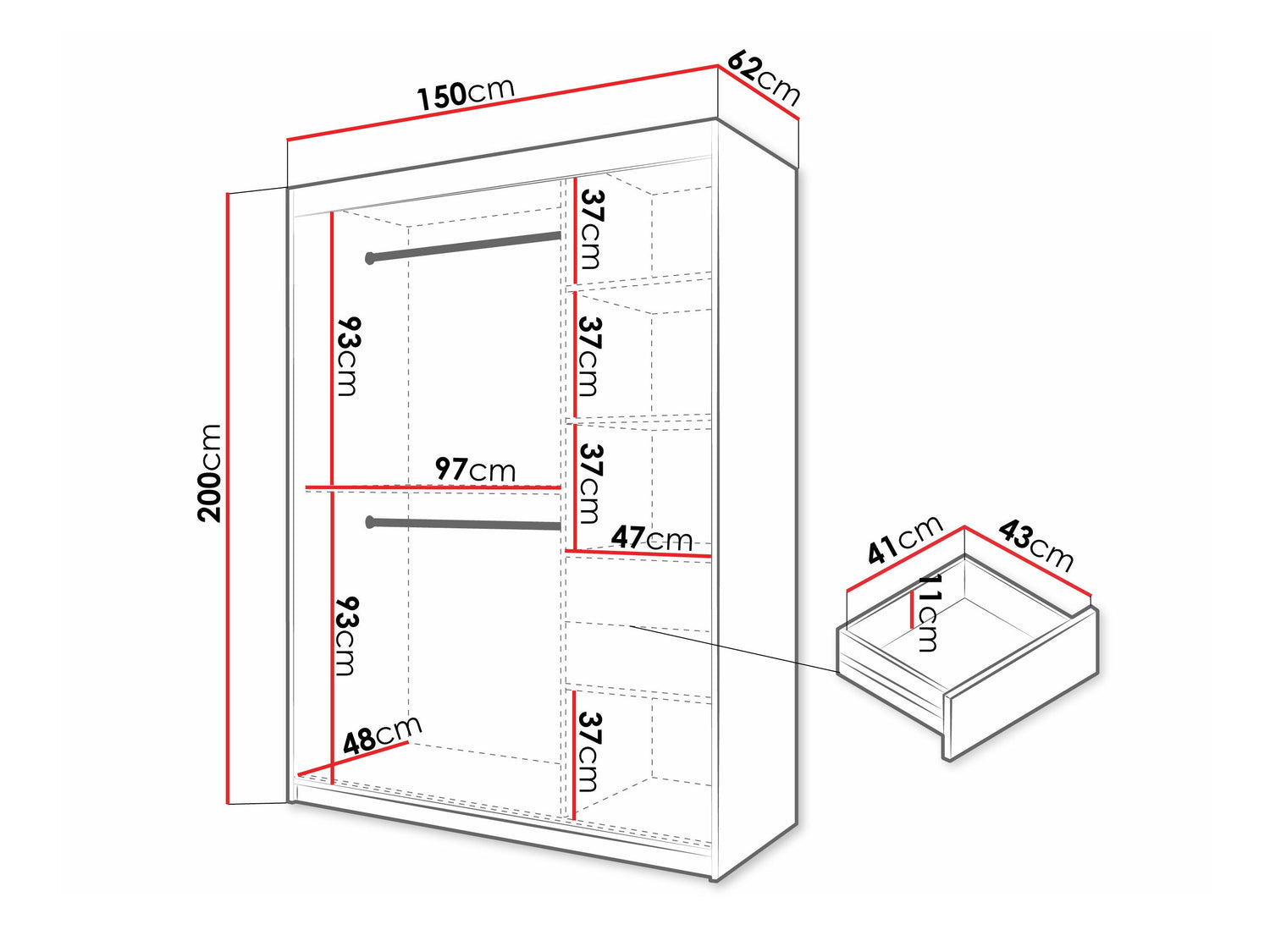 Gardróbszekrény Szafa 100 FLUTES, Szín: Fekete, Fiókok: Igen, Szélesség: 150 cm, Led világítás: Igen