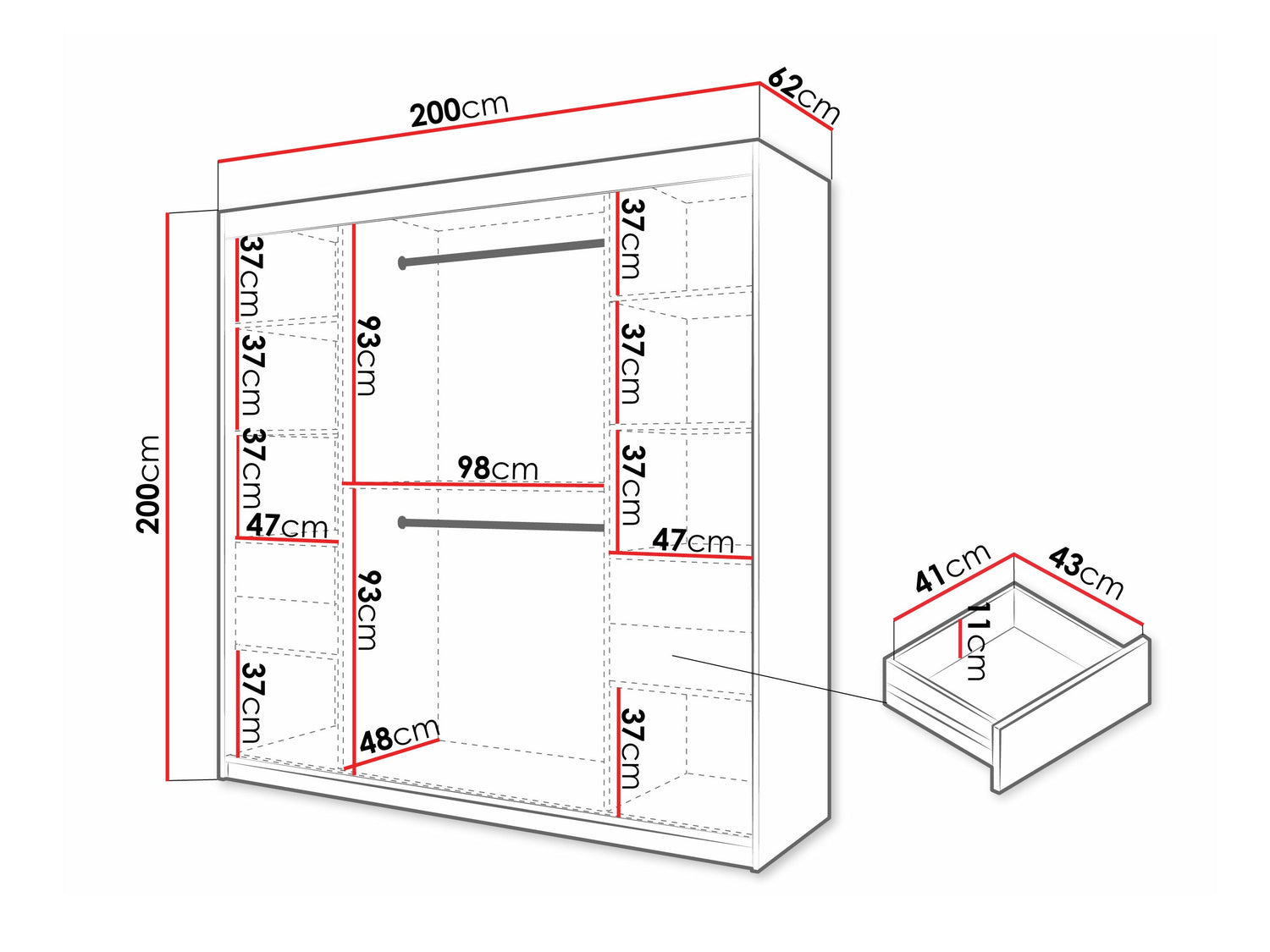Gardróbszekrény Szafa 100 FLUTES, Szín: Fekete, Fiókok: Igen, Szélesség: 200 cm, Led világítás: Igen