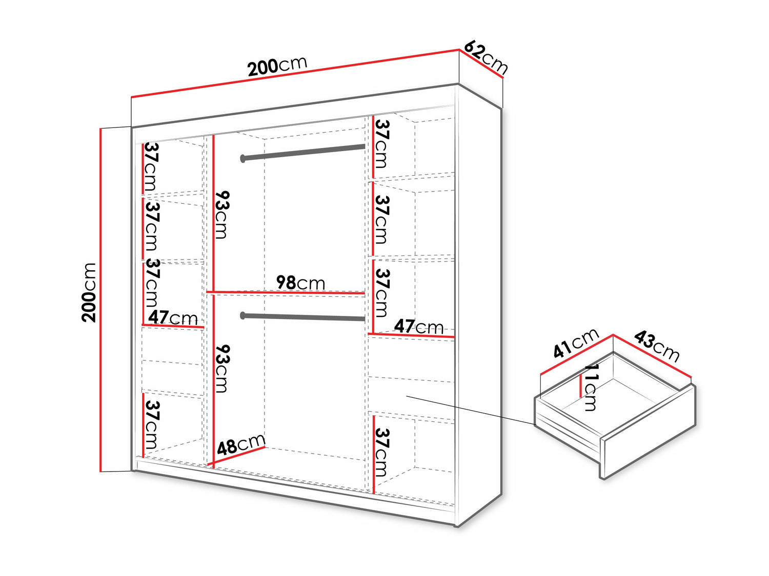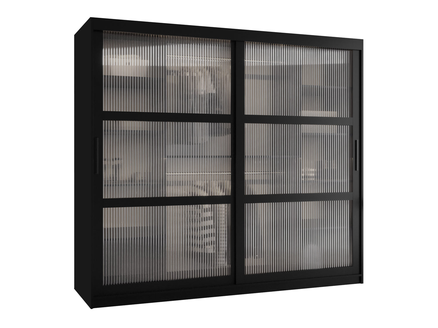 Gardróbszekrény Szafa 100 FLUTES, Szín: Fekete, Fiókok: Igen, Szélesség: 200 cm, Led világítás: Nem