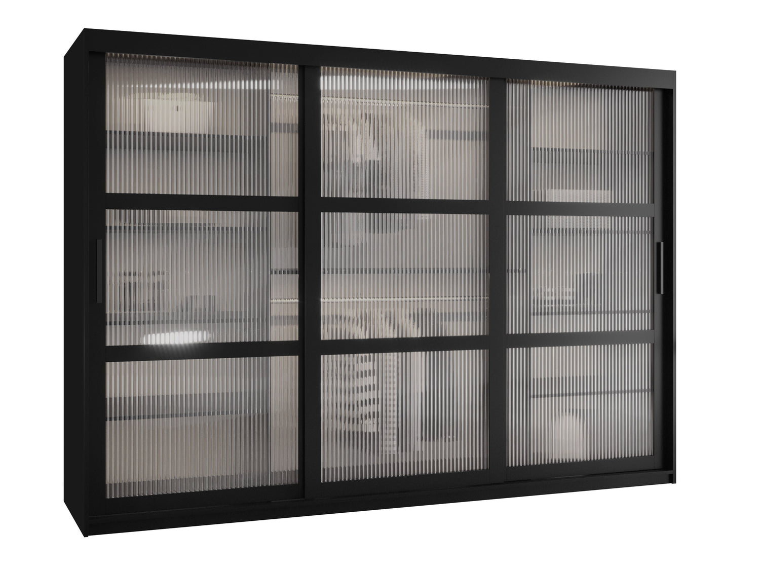 Gardróbszekrény Szafa 100 FLUTES, Szín: Fekete, Fiókok: Igen, Szélesség: 250 cm, Led világítás: Nem