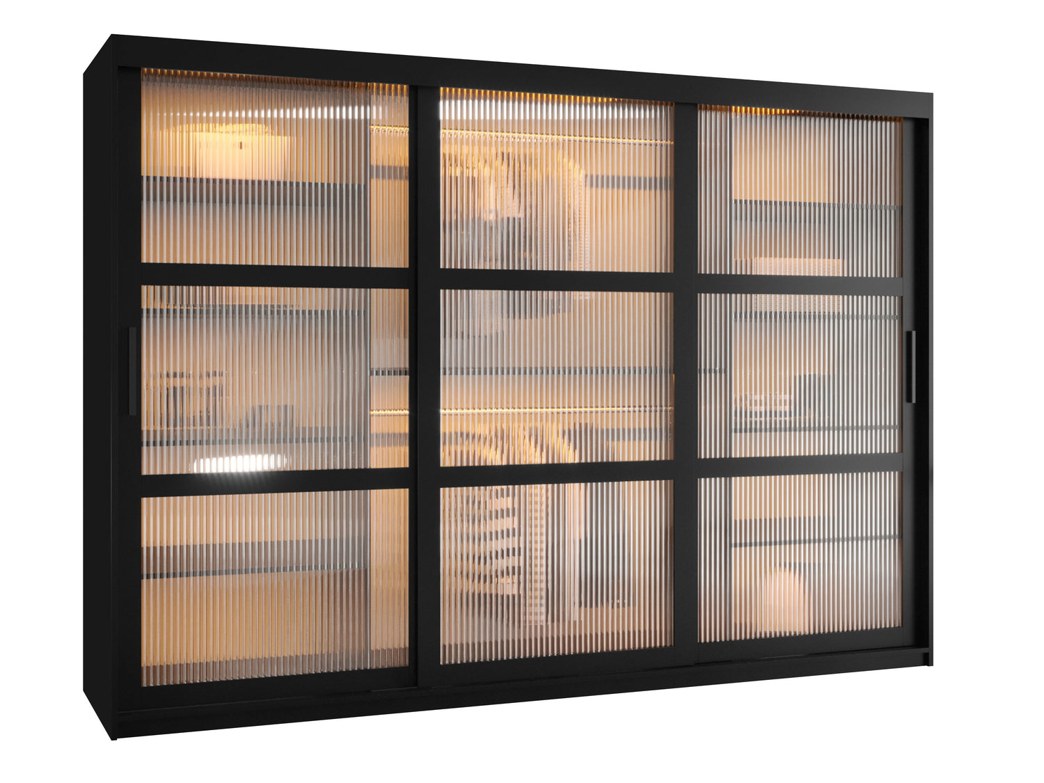 Gardróbszekrény Szafa 100 FLUTES, Szín: Fekete, Fiókok: Nem, Szélesség: 250 cm, Led világítás: Igen