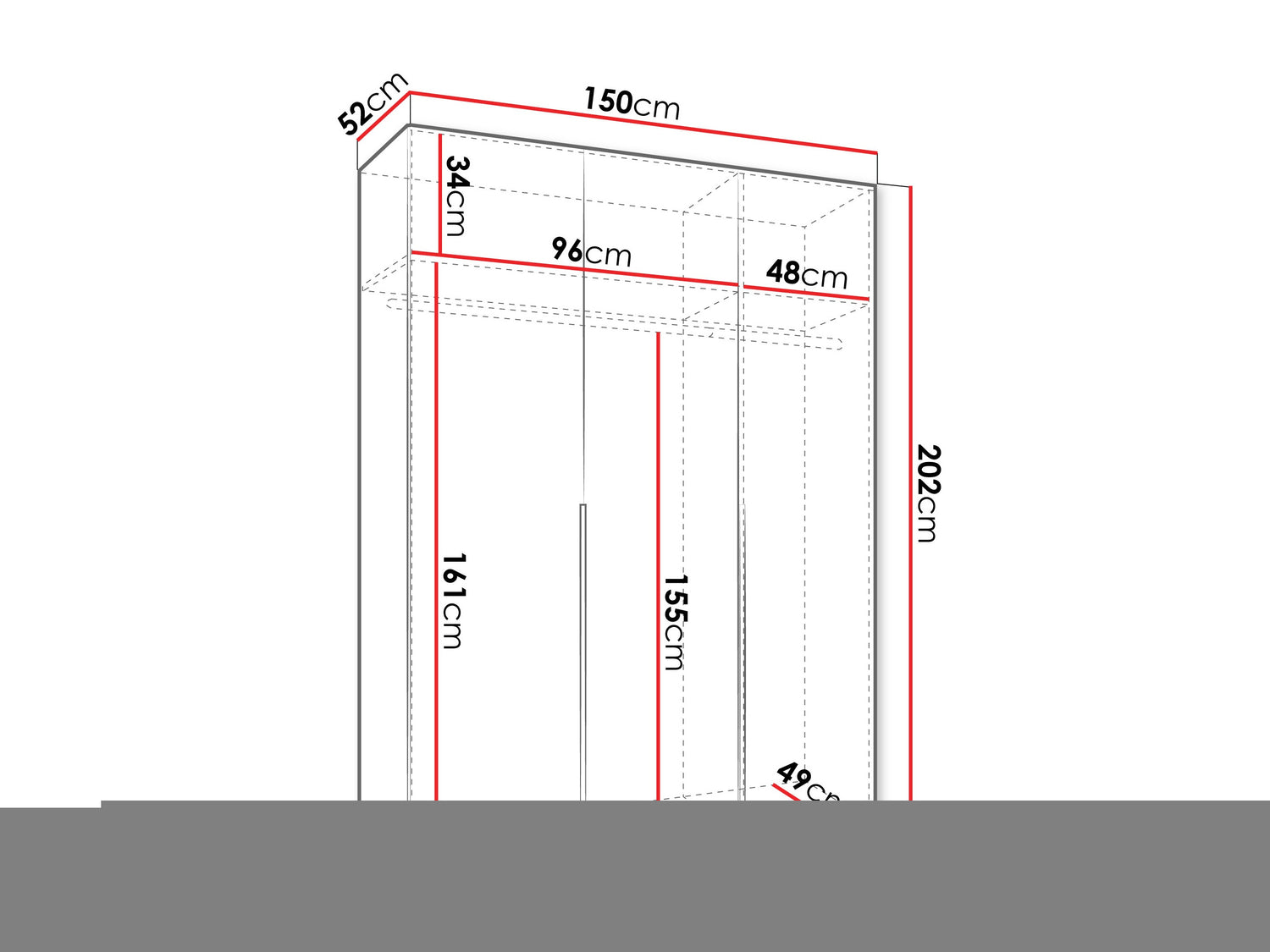 Gardróbszekrény Szafa 150 ALICANTE 1, Szín: Artisan tölgy, Fogantyú színe: Kasmír