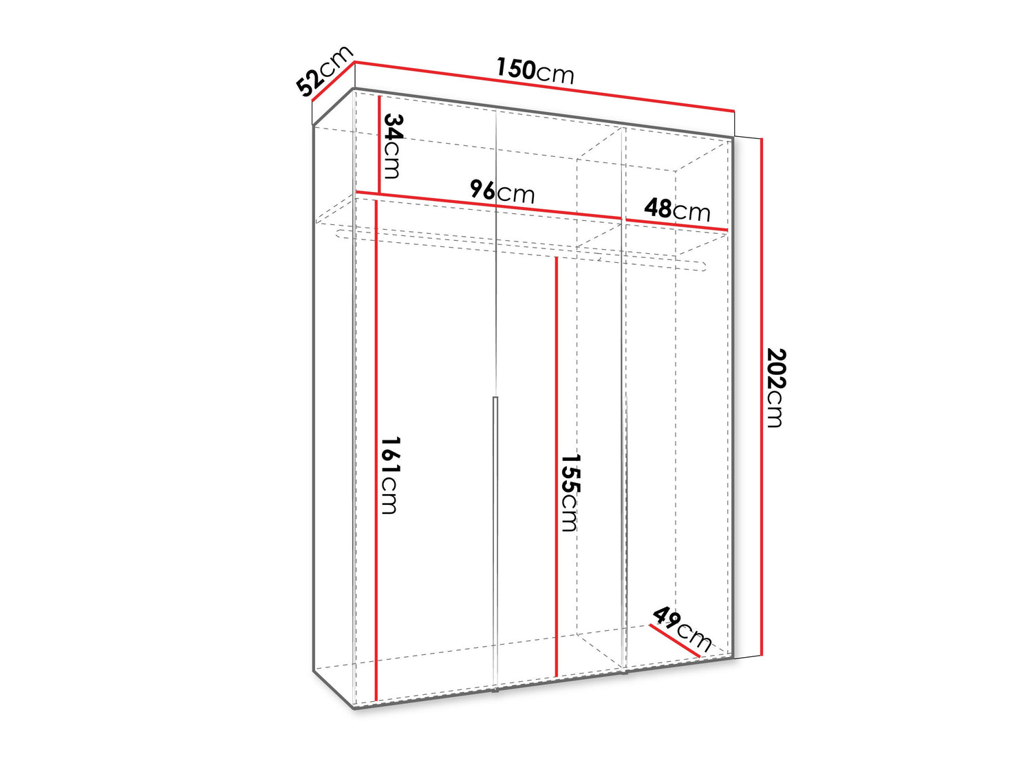 Gardróbszekrény Szafa 150 ALICANTE 1, Szín: Fehér, Fogantyú színe: Kasmír