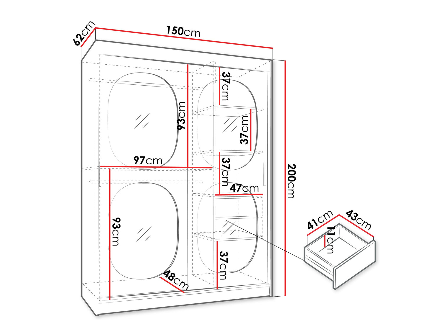 Gardróbszekrény Szafa 150 BAHRAJN 2, Szín: Fekete, Fiókok: Igen, Led világítás: Nem