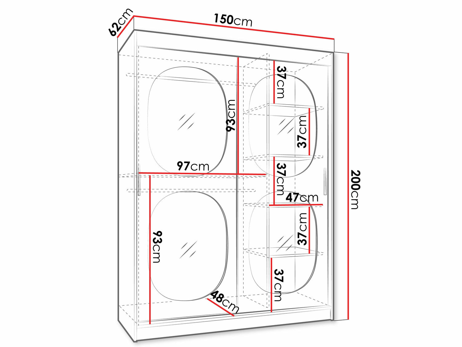 Gardróbszekrény Szafa 150 BAHRAJN 2, Szín: Fekete, Fiókok: Nem, Led világítás: Igen