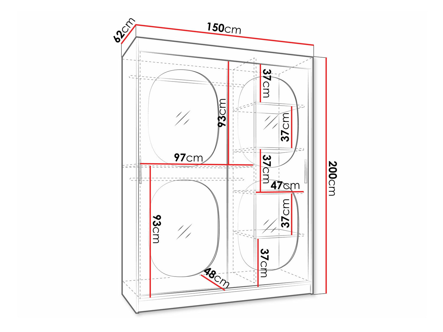 Gardróbszekrény Szafa 150 BAHRAJN 2, Szín: Kasmír, Fiókok: Nem, Led világítás: Igen