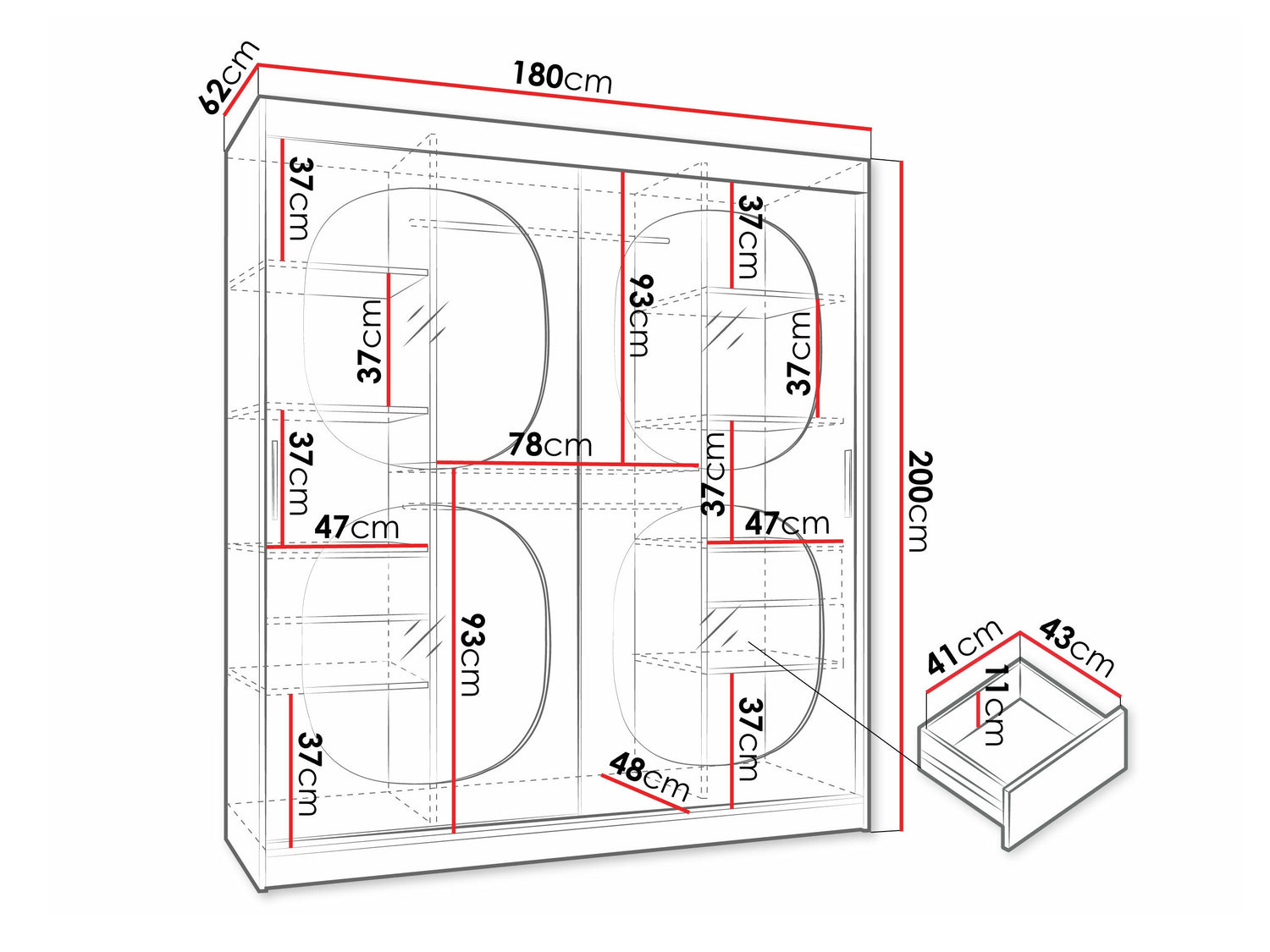 Gardróbszekrény Szafa 180 BAHRAJN 2, Szín: Kasmír, Fiókok: Igen, Led világítás: Igen