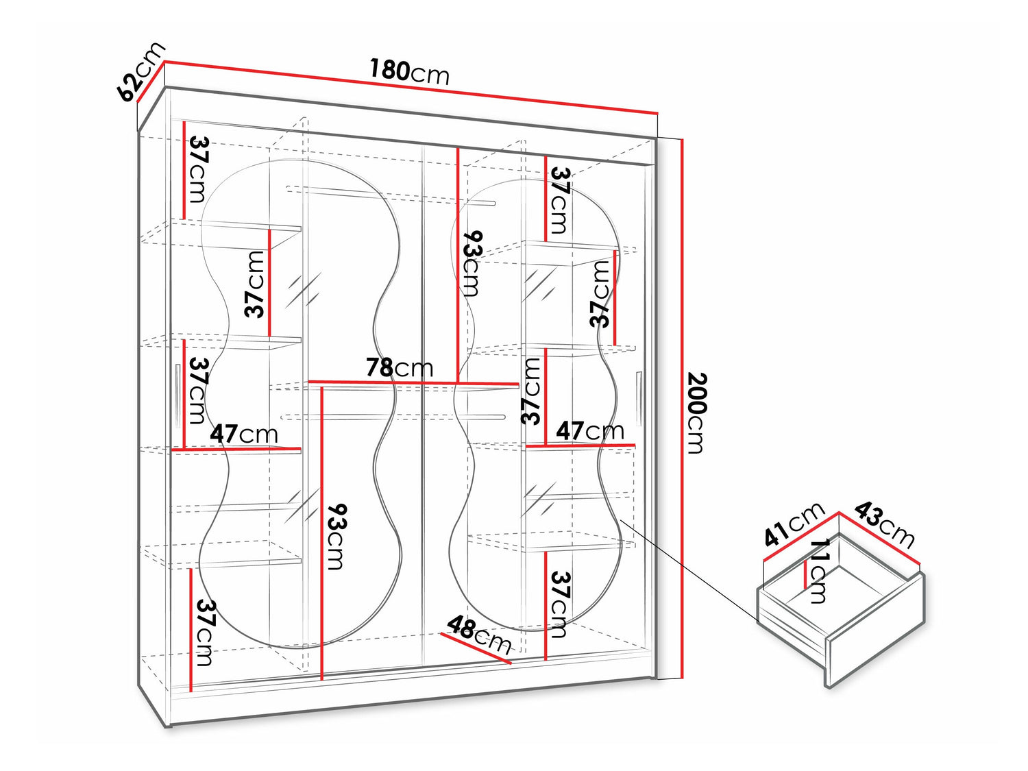Gardróbszekrény Szafa 180 BAHRAJN 3, Szín: Fekete, Fiókok: Igen, Led világítás: Nem