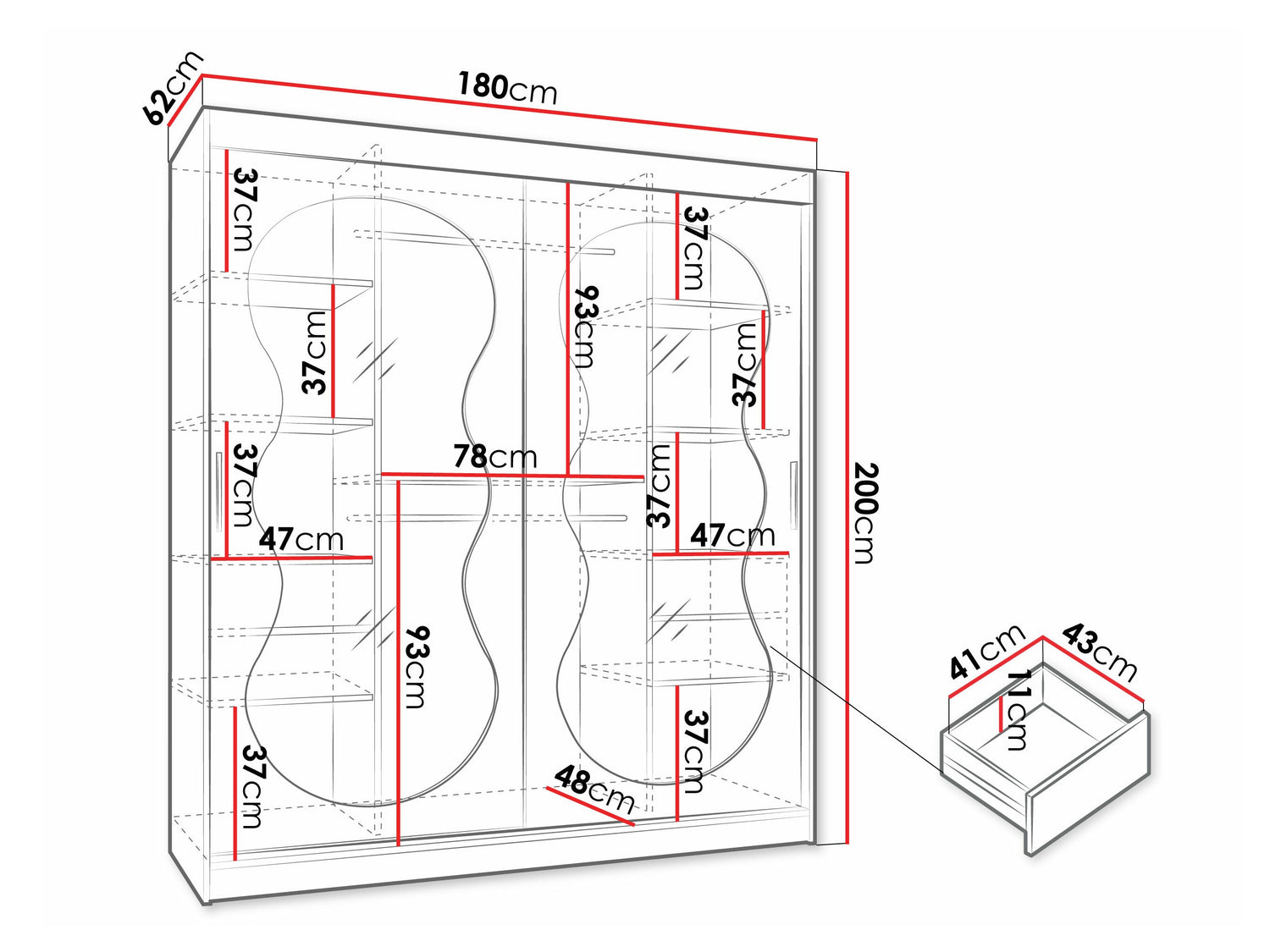 Gardróbszekrény Szafa 180 BAHRAJN 3, Szín: Kasmír, Fiókok: Igen, Led világítás: Igen