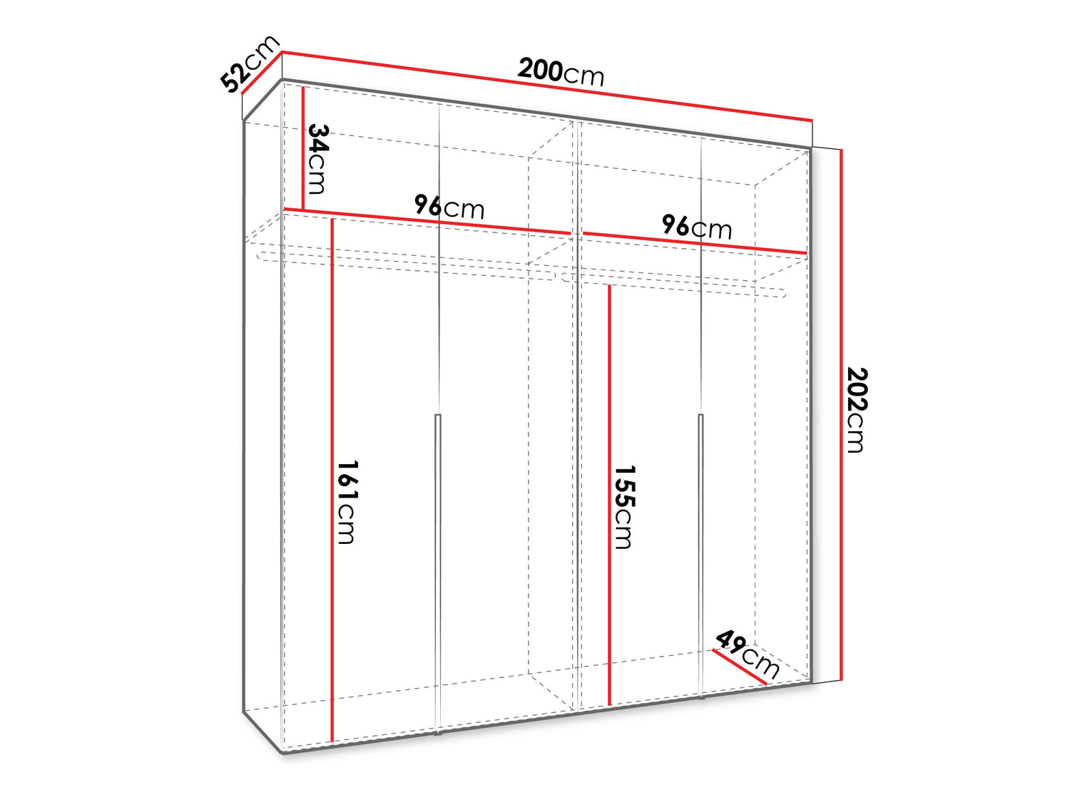 Gardróbszekrény Szafa 200 ALICANTE 1, Szín: Fehér, Fogantyú színe: Aranysárga