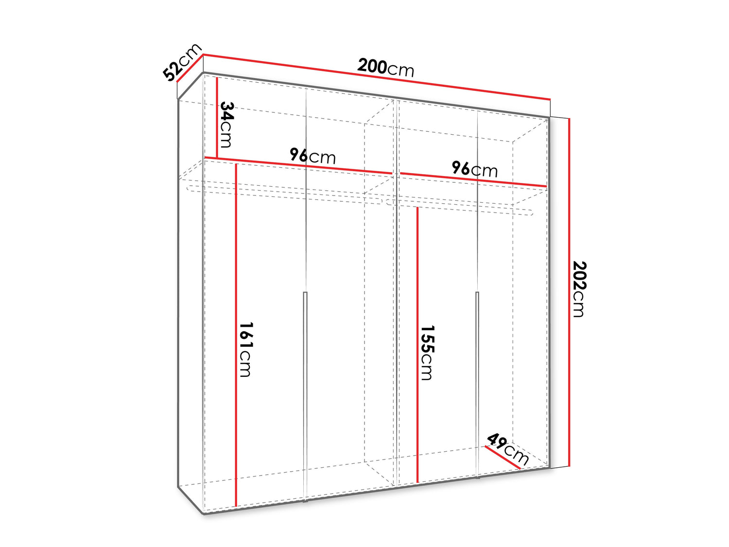 Gardróbszekrény Szafa 200 ALICANTE 1, Szín: Fekete, Fogantyú színe: Kasmír