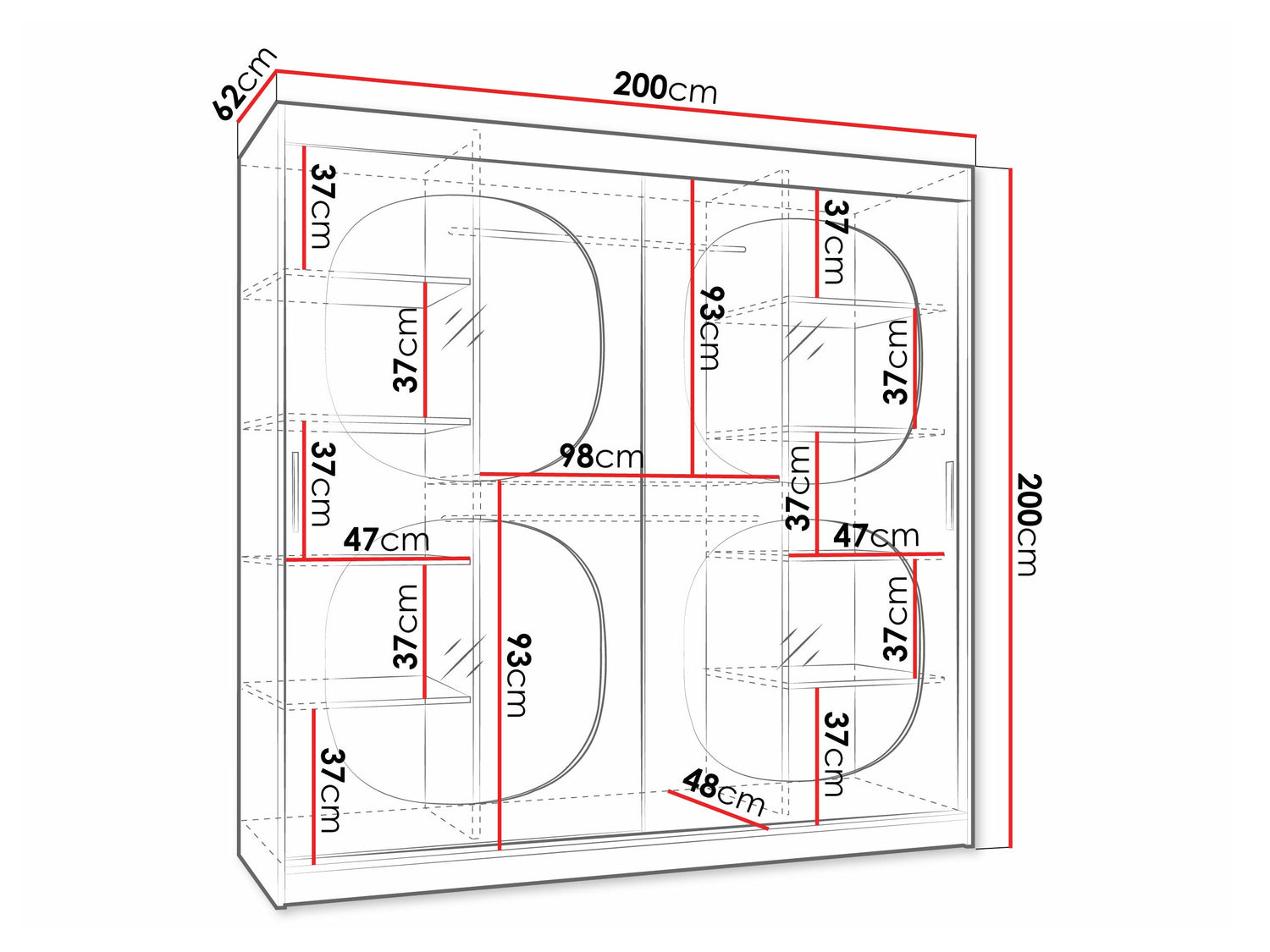 Gardróbszekrény Szafa 200 BAHRAJN 2, Szín: Fekete, Fiókok: Nem, Led világítás: Igen