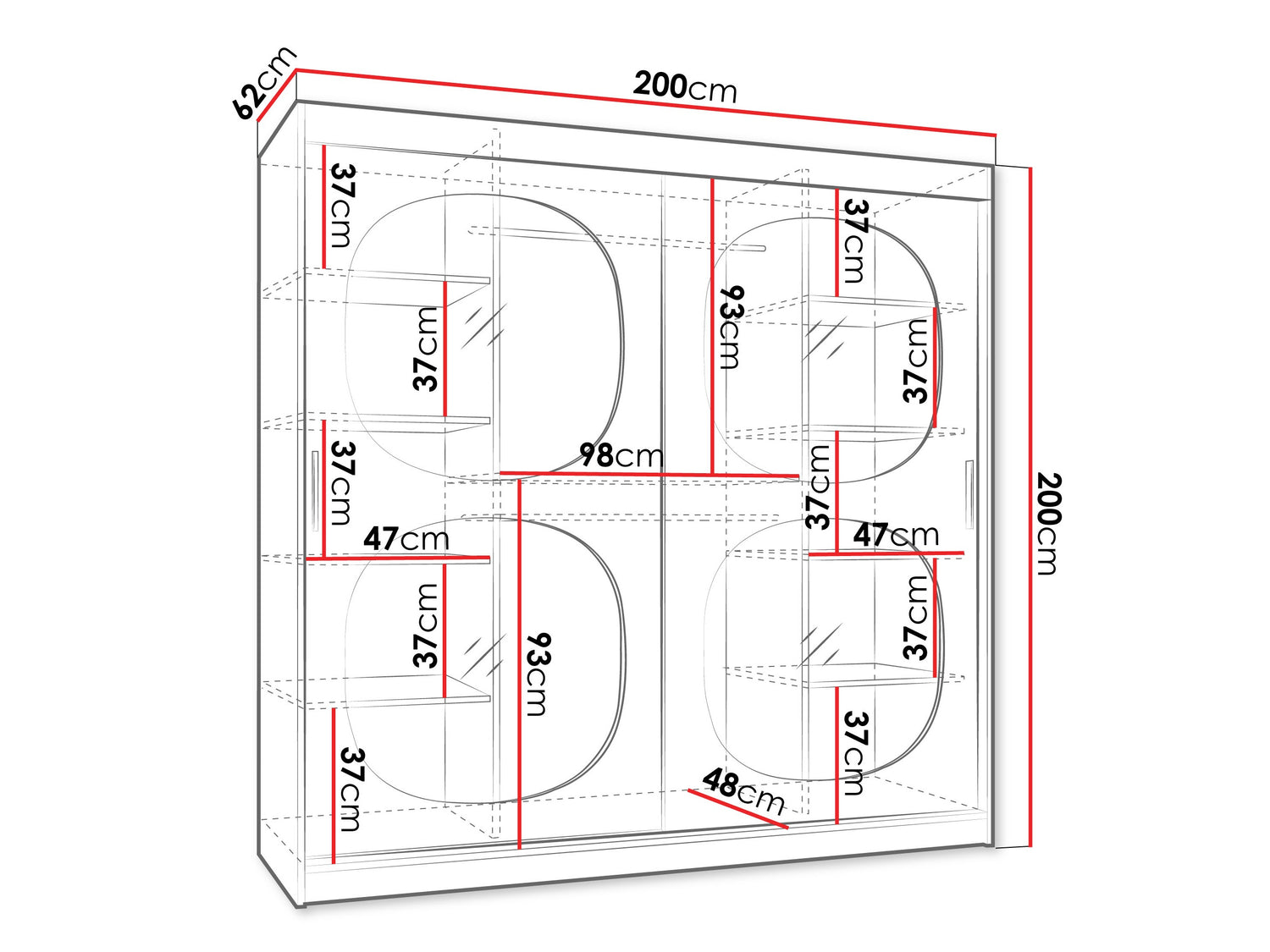 Gardróbszekrény Szafa 200 BAHRAJN 2, Szín: Fekete, Fiókok: Nem, Led világítás: Nem