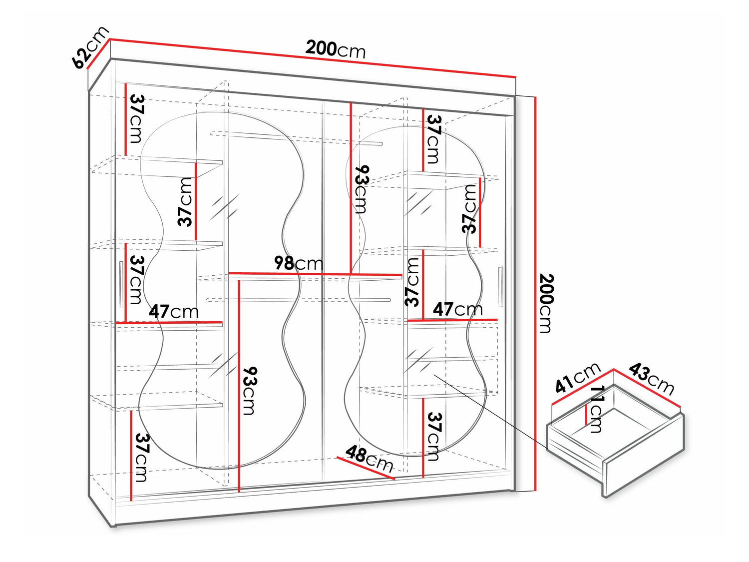 Gardróbszekrény Szafa 200 BAHRAJN 3, Szín: Fekete, Fiókok: Igen, Led világítás: Igen