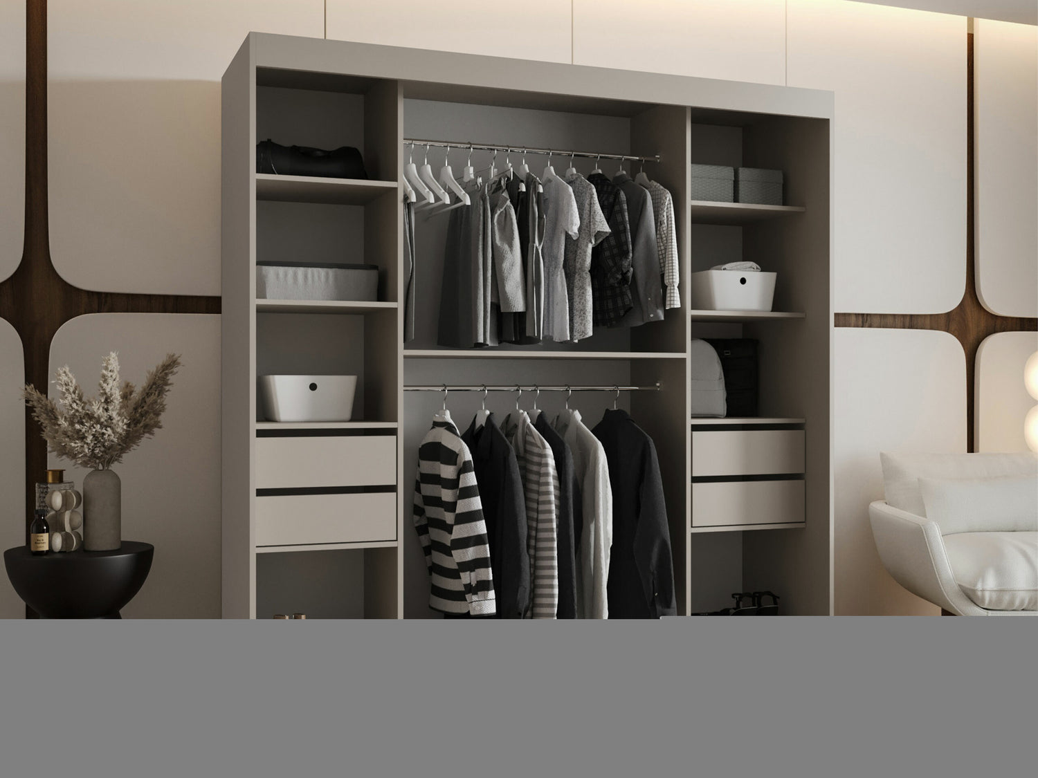 Gardróbszekrény Szafa 200 BAHRAJN 3, Szín: Fekete, Fiókok: Igen, Led világítás: Nem