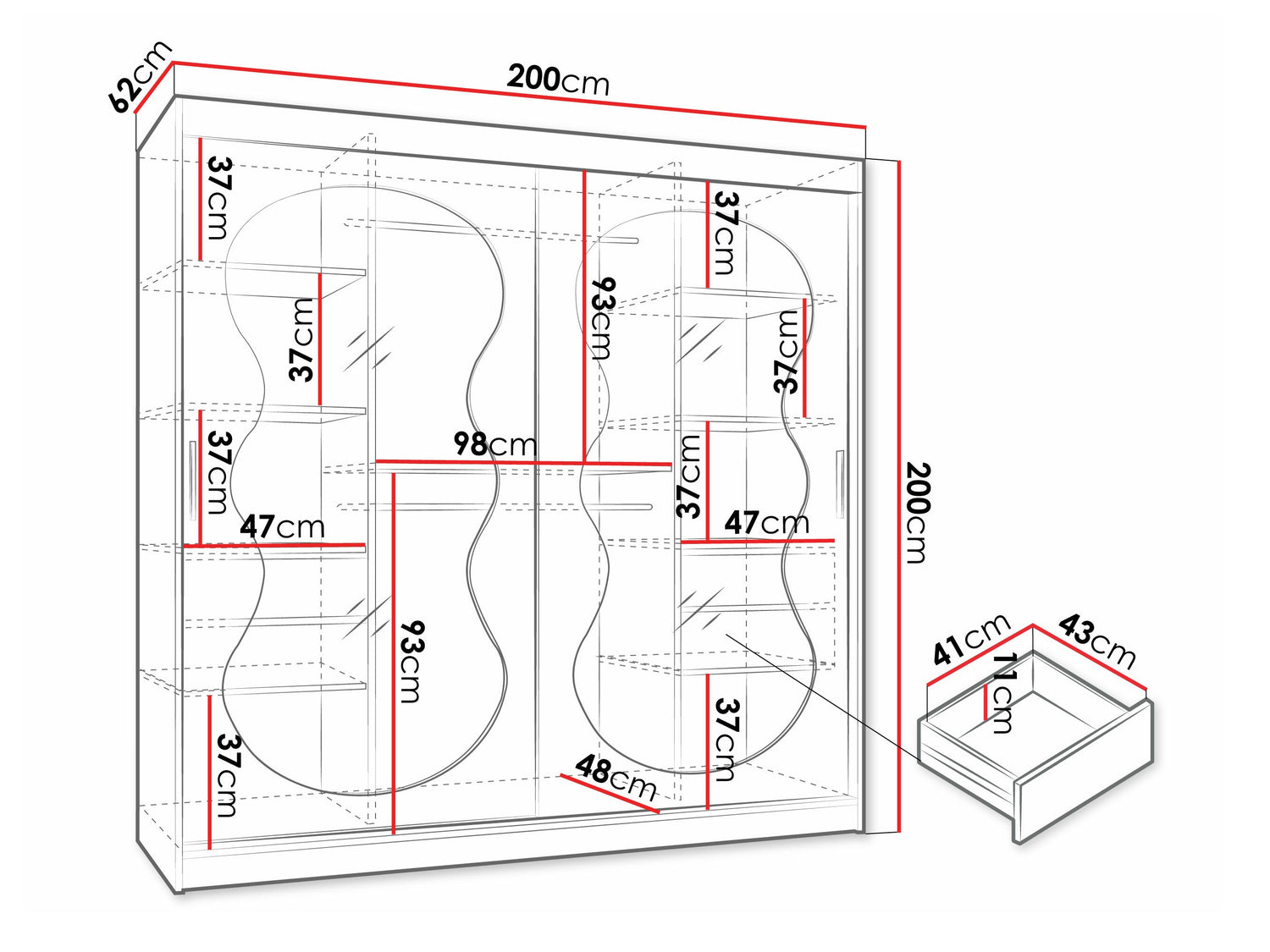 Gardróbszekrény Szafa 200 BAHRAJN 3, Szín: Kasmír, Fiókok: Igen, Led világítás: Igen