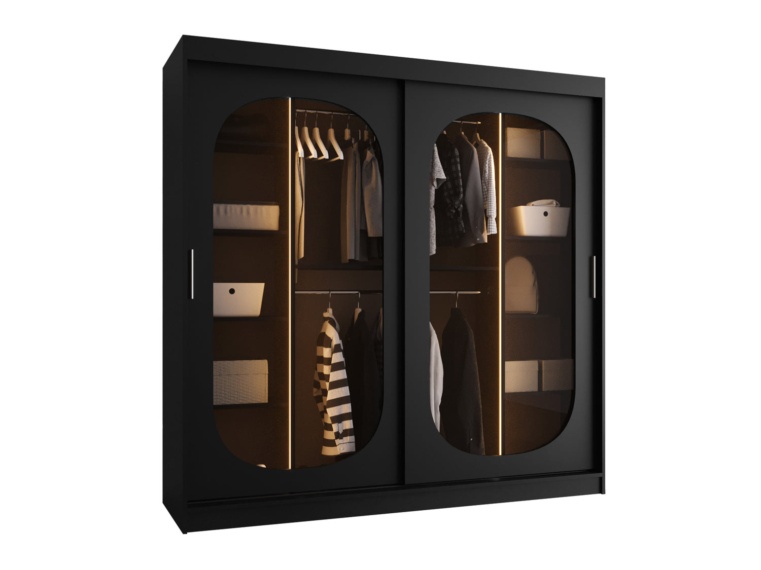 Gardróbszekrény Szafa 200 BAHRAJN, Szín: Fekete, Fiókok: Igen, Led világítás: Igen