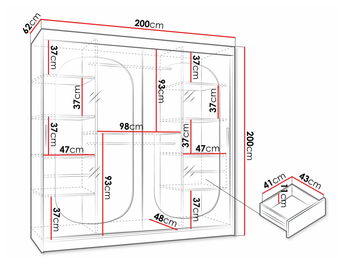 Gardróbszekrény Szafa 200 BAHRAJN, Szín: Fekete, Fiókok: Igen, Led világítás: Nem