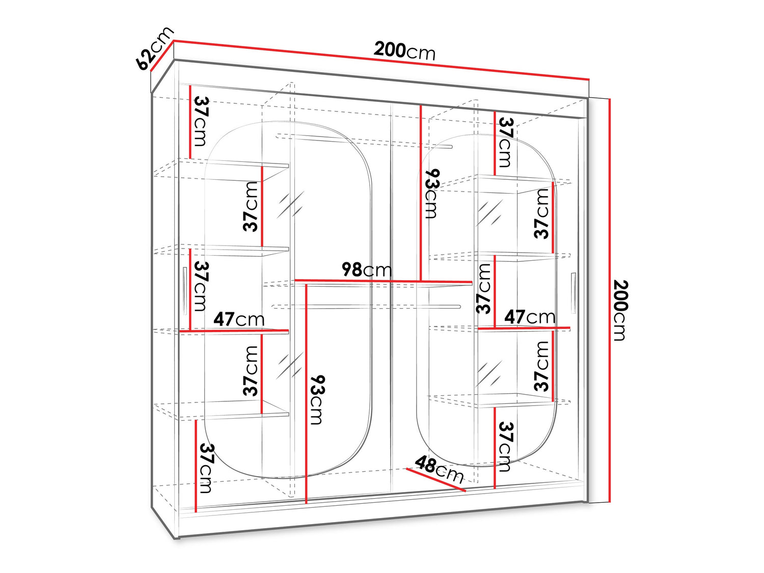 Gardróbszekrény Szafa 200 BAHRAJN, Szín: Kasmír, Fiókok: Nem, Led világítás: Igen