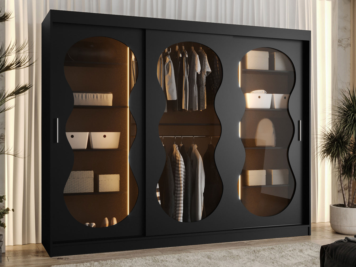Gardróbszekrény Szafa 250 BAHRAJN 3, Szín: Fekete, Fiókok: Igen, Led világítás: Igen