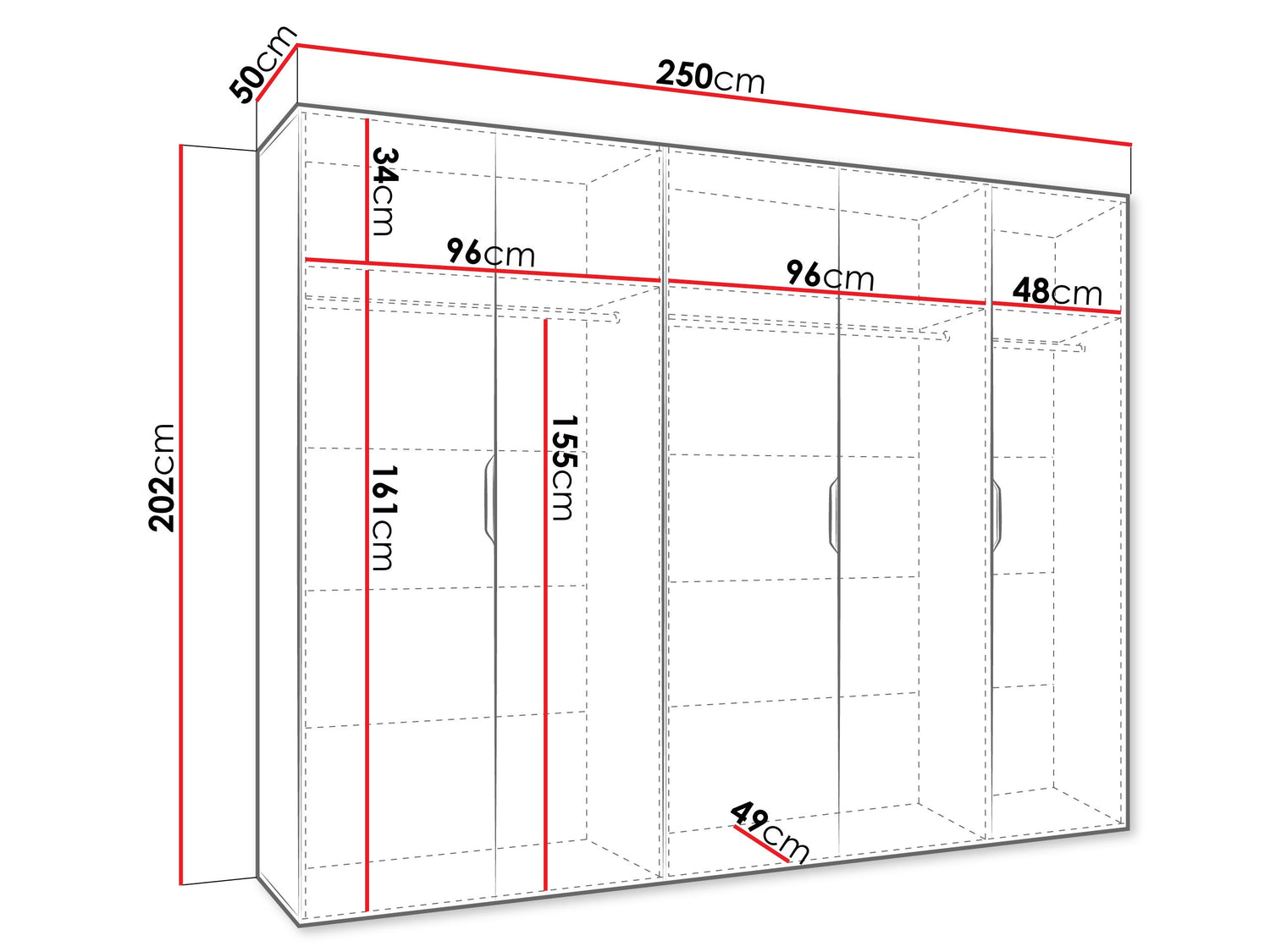 Gardróbszekrény Szafa 250 MALAGA z lustrem, Szín: Fekete