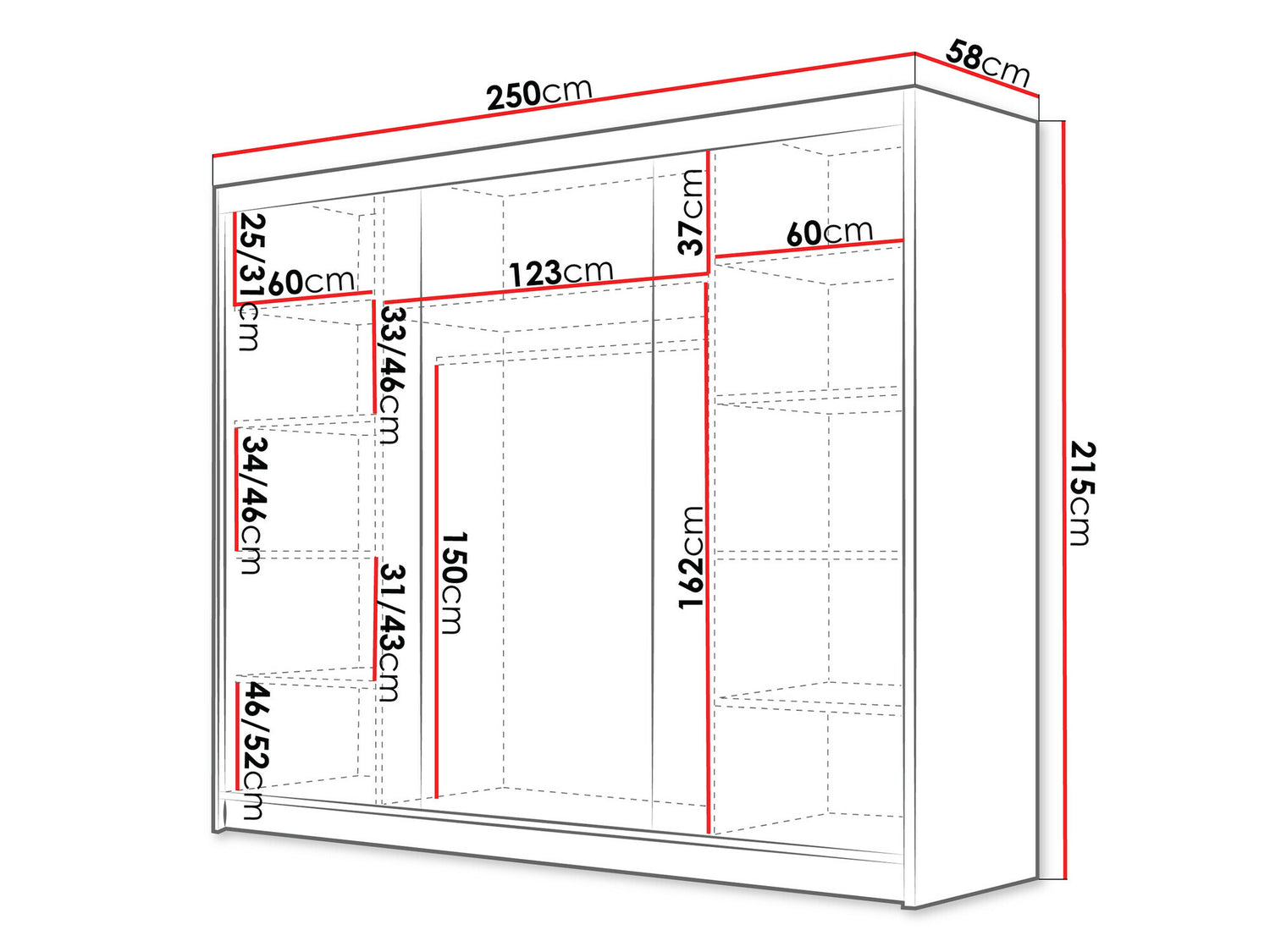 Gardróbszekrény Szafa AMBER 250 VII, Szín: Fehér, Tükör: Nem